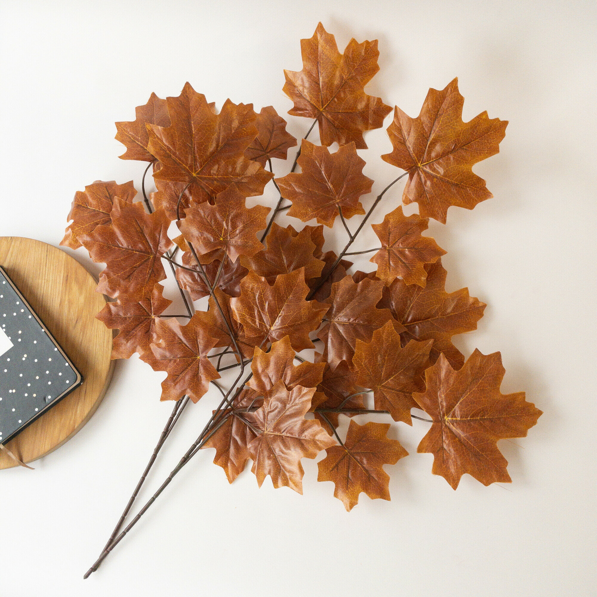 Купить Кленовые листья на ветке, искусственные, Коричневые, Осенний декор, 63 см, листья 8 -14 см, 2 ветки в наборе