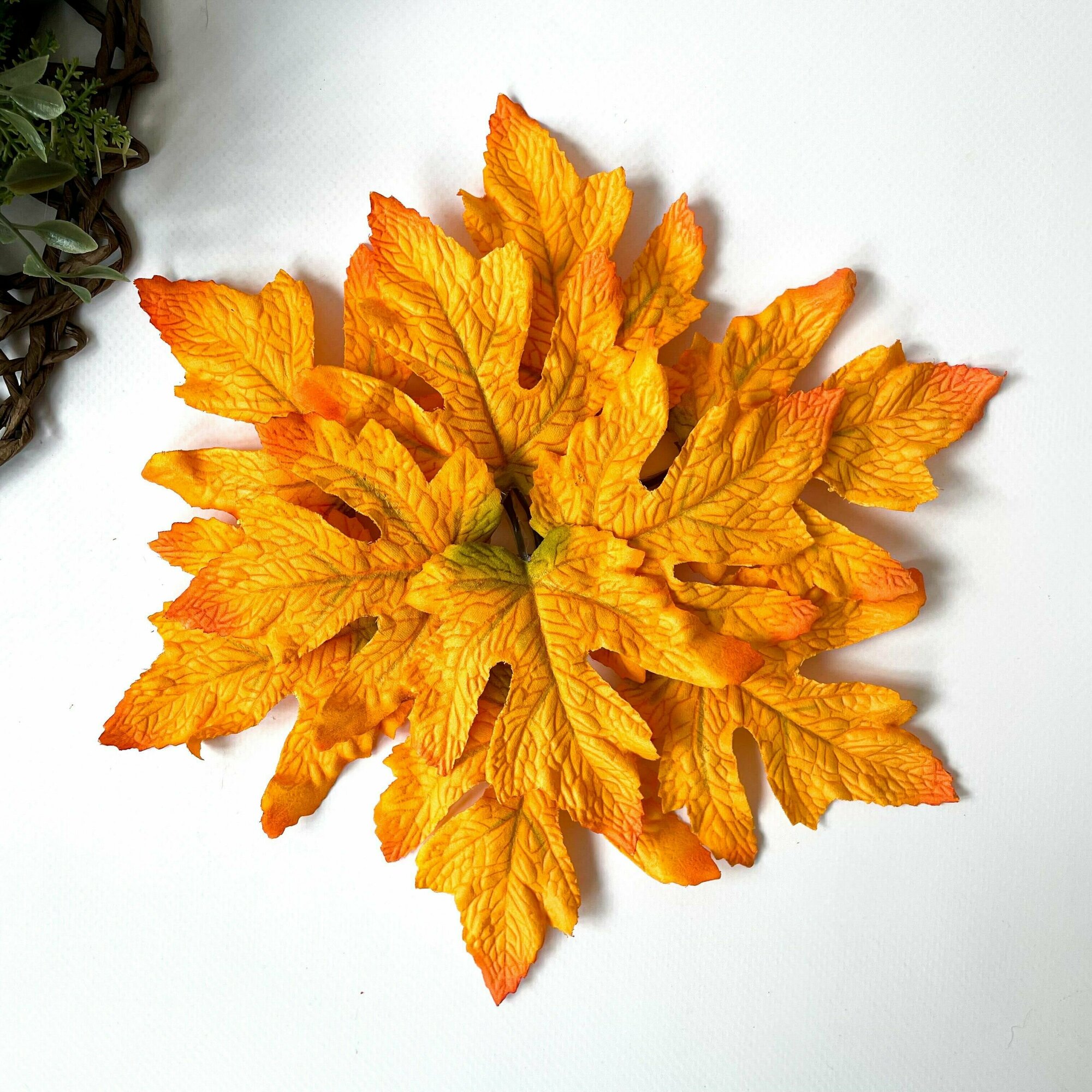 Листья клена Оранжевые бархатистые, 9*9,5 см, для рукоделия и декора, набор 10 шт.