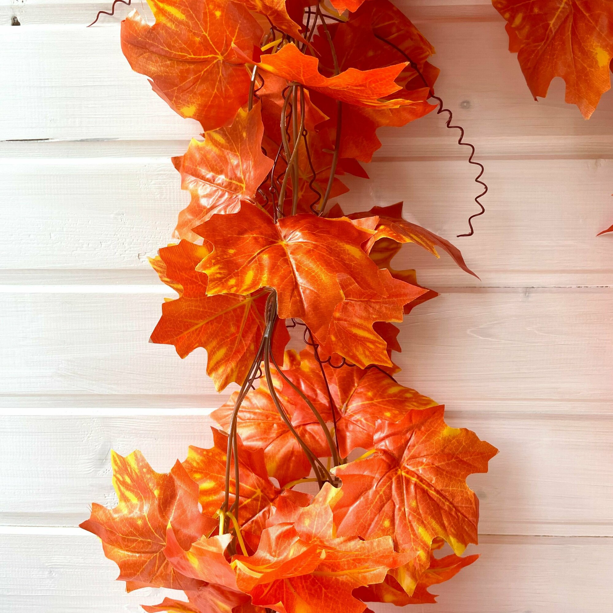 Кленовые листья, осенние, искусственные, Оранжевые, лиана 2,35 метра, 3 штуки