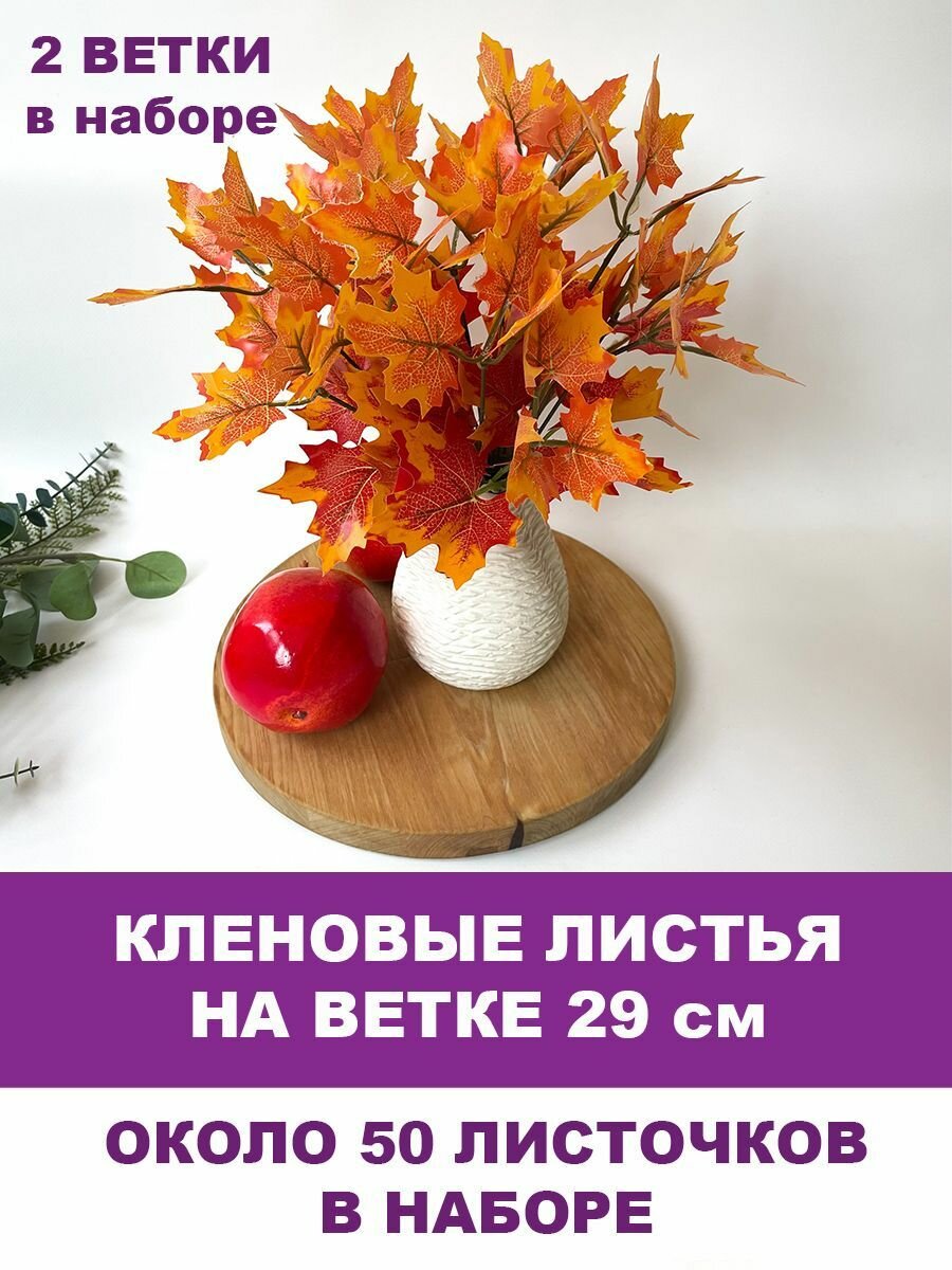 СохранитьКленовые листья на ветке 29 см, ветки клена осенние ярко оранжевые искусственные. Набор 2 шт. интересное: