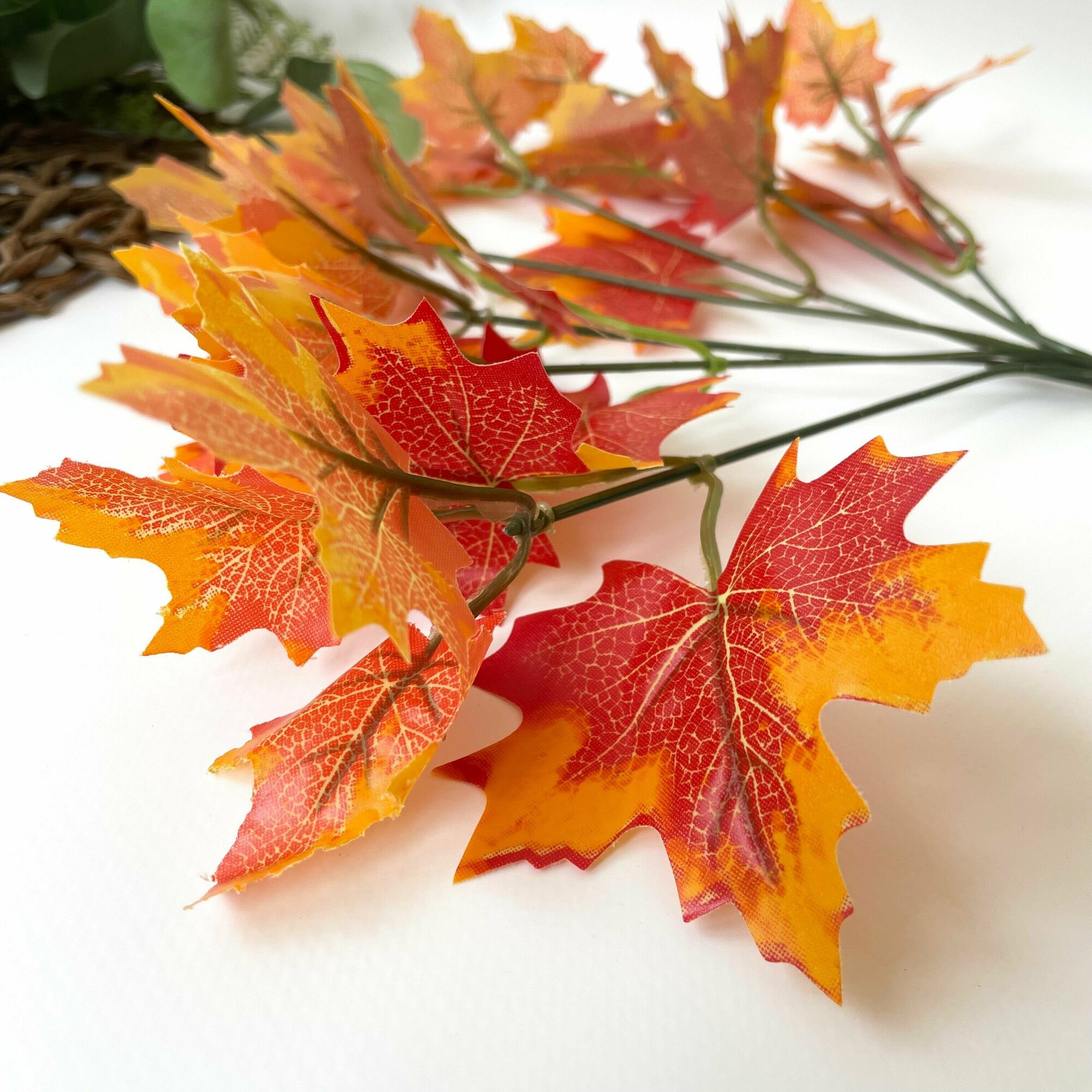 Купить Кленовые листья на ветке 29 см, ветки клена осенние ярко оранжевые искусственные. Набор 2 шт.