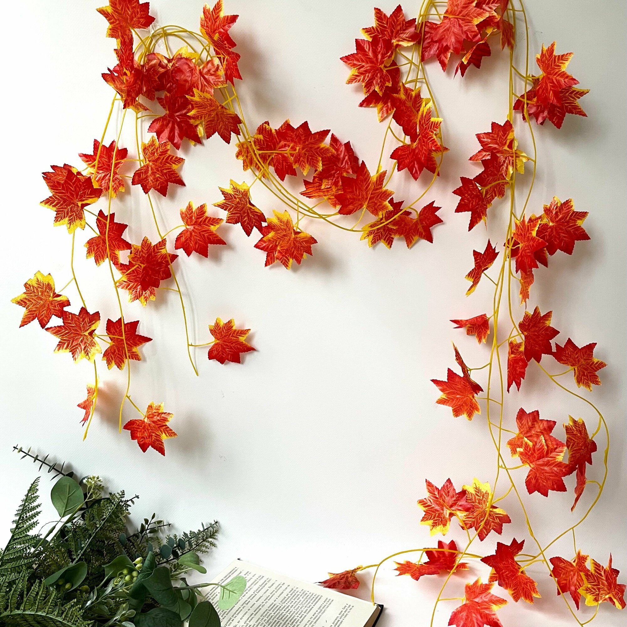 Купить Кленовые листья, осенние, искусственные, Оранжевые, лиана 2,35 метра, 3 штуки