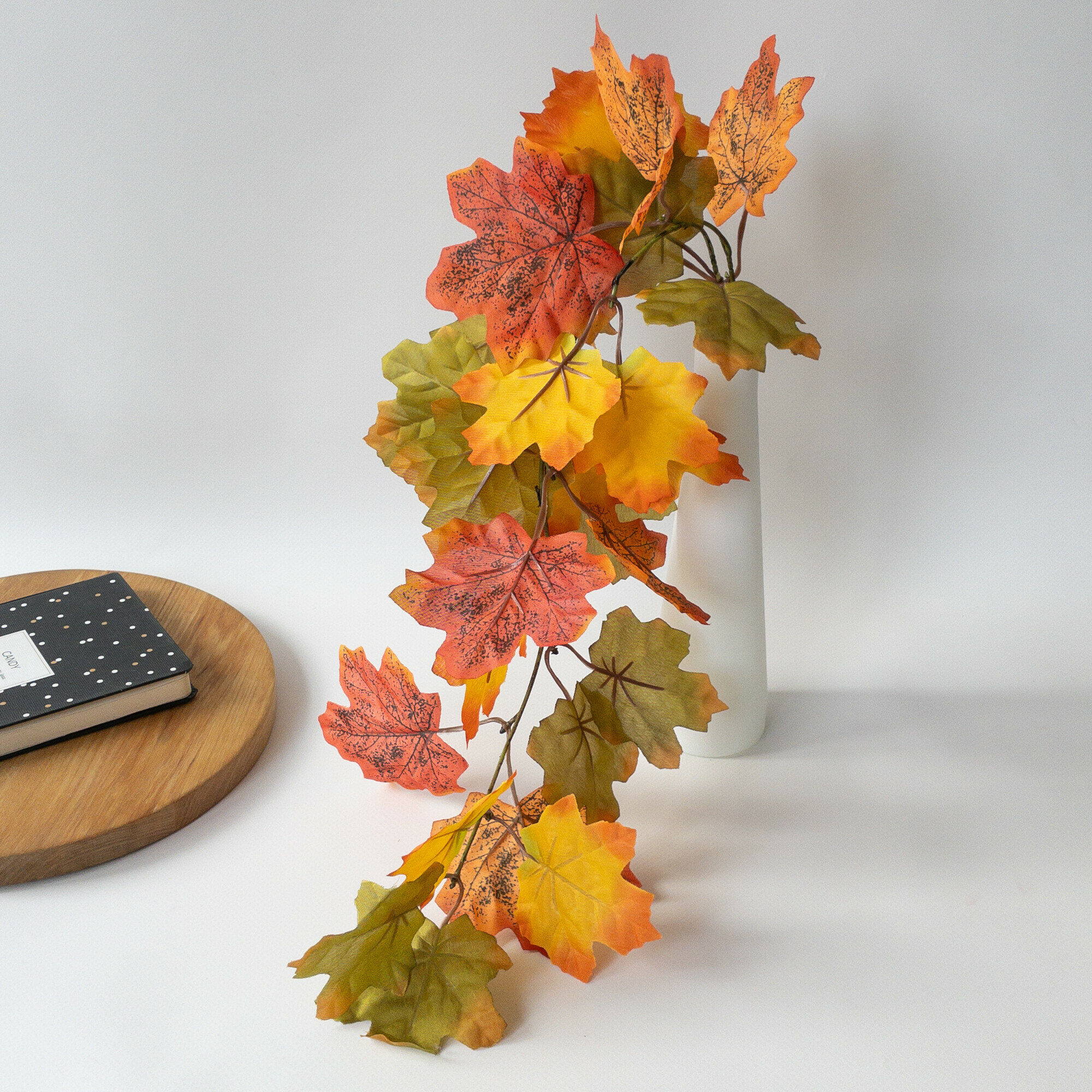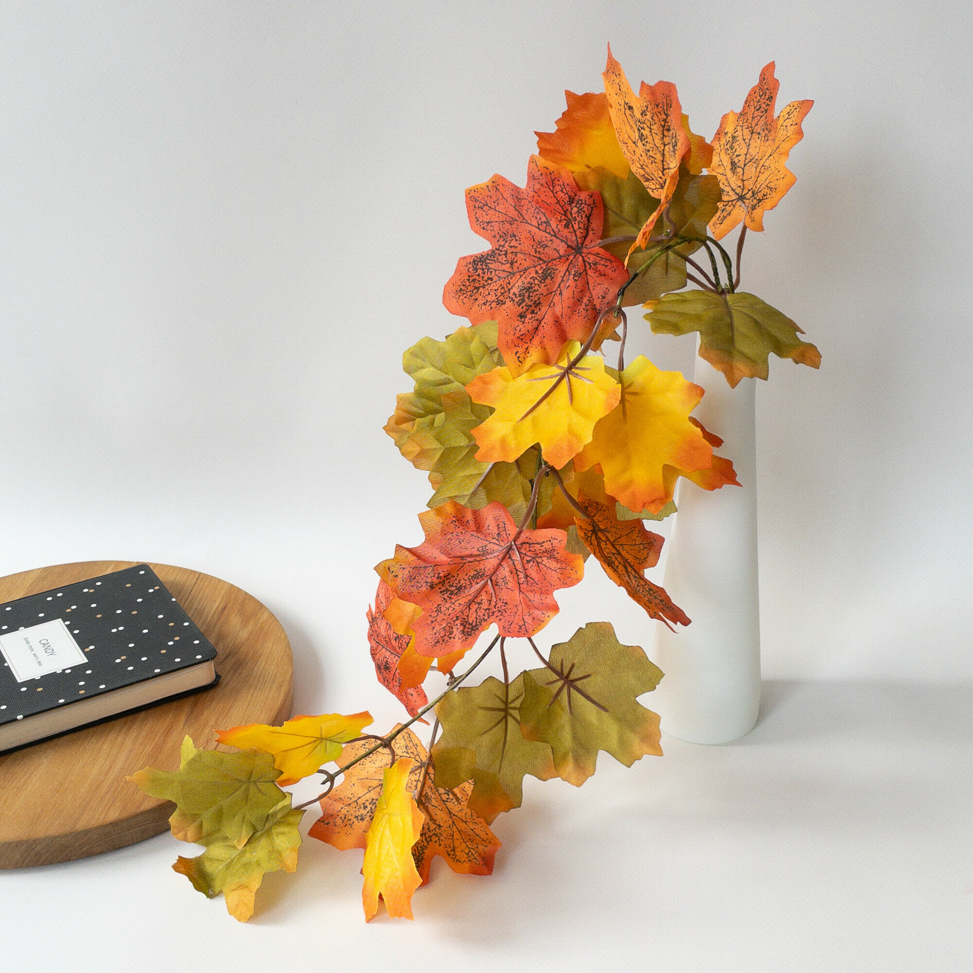 Купить Кленовые листья на свисающей ветке, искусственные, Осенний декор, 63 см, 1 ветка в наборе