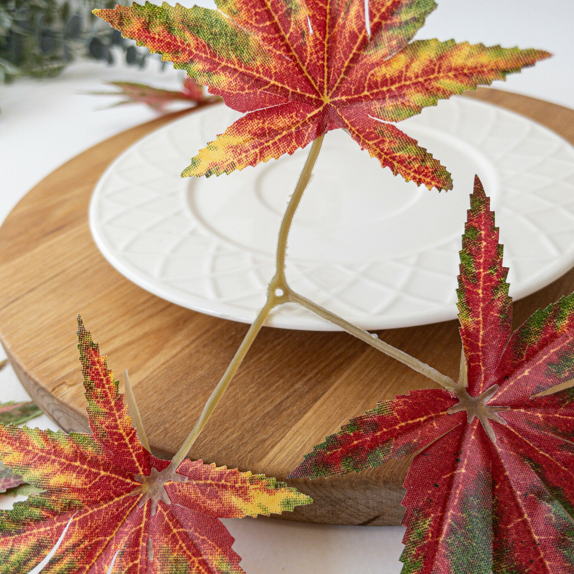 Купить Листья клена искусственные, осенние, для рукоделия и декора, 7-10 см, 10 веток (30 листочков)