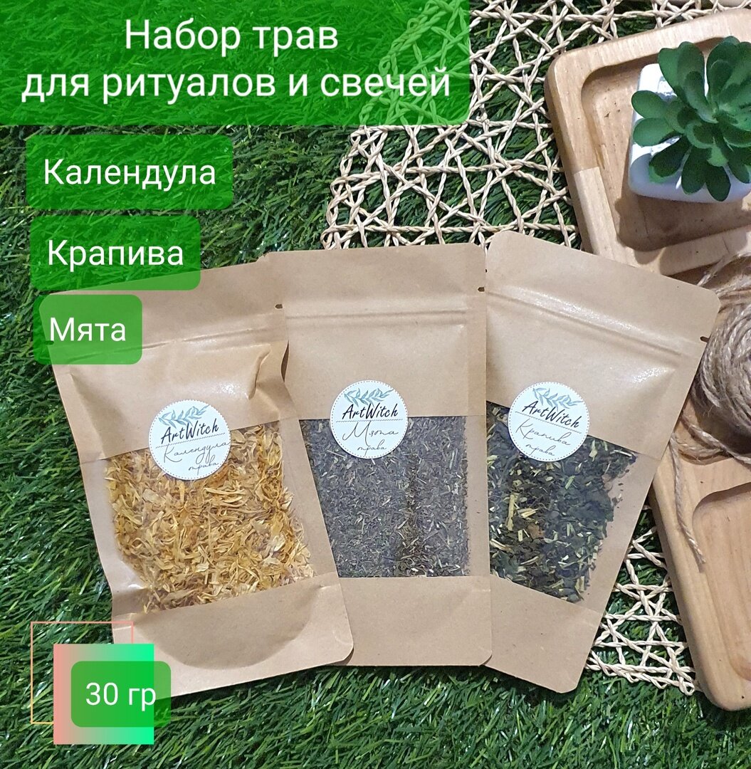 Набор трав для свечей и ритуалов, календула, крапива, мята 30 грамм интересное: