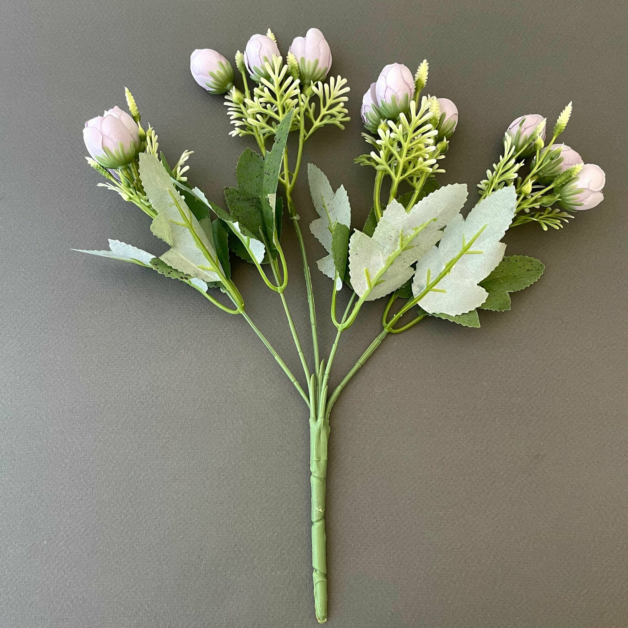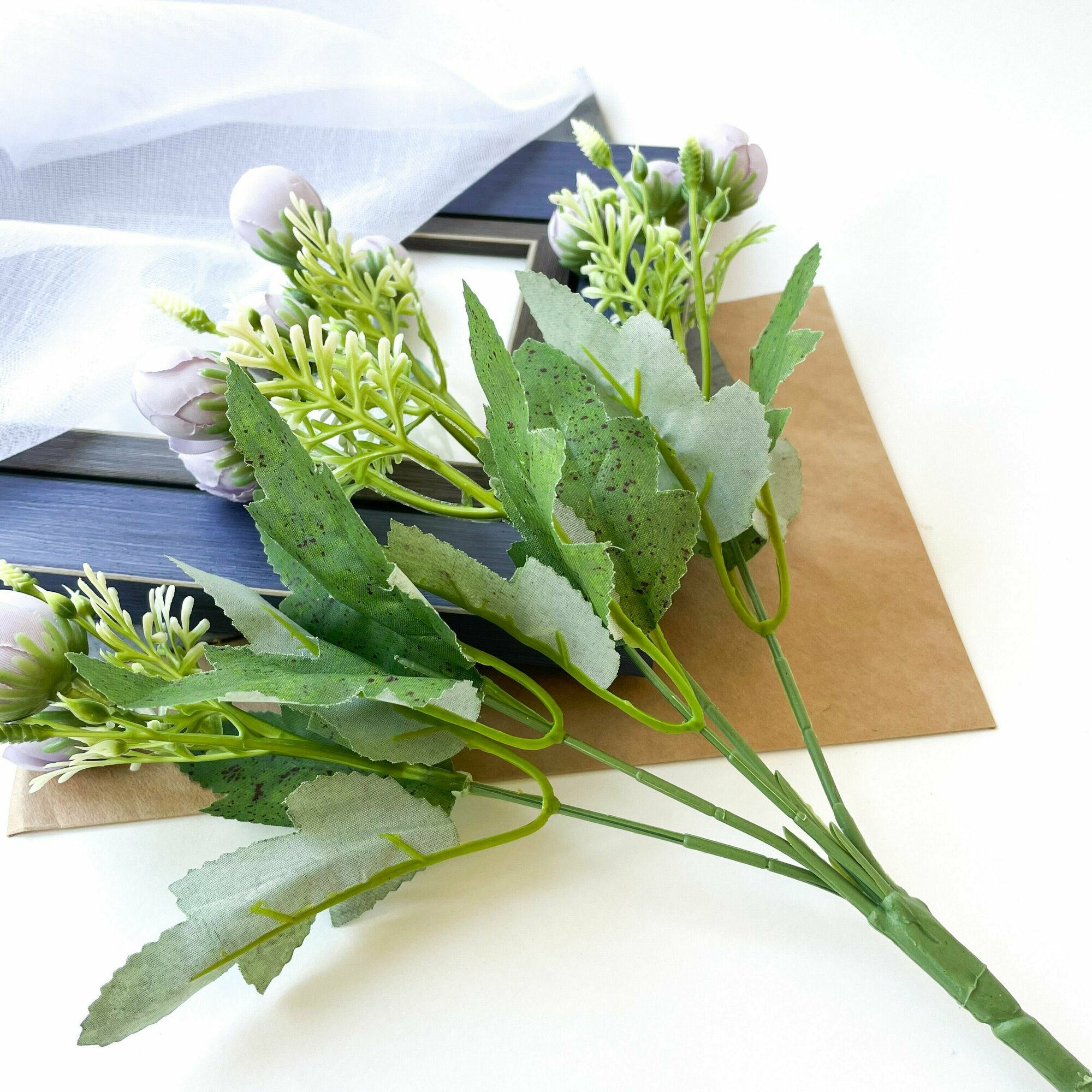 Розы пластиковые Белые, мини-бутоны, 5 веток, букет 32 см, 2 шт.