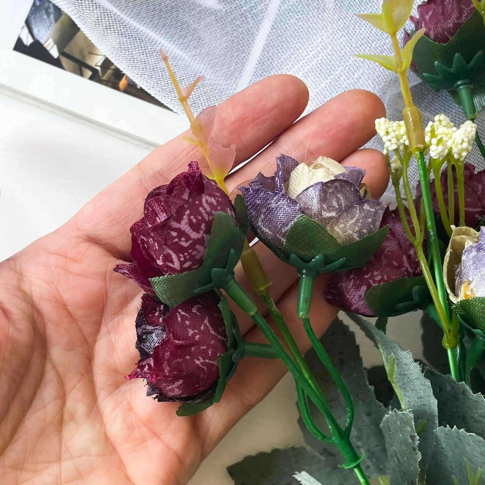 СохранитьРозы искусственные, Букет цветов, Мраморные, Темно-бордовые с фиолетовым 34 см, 1 букет интересное: