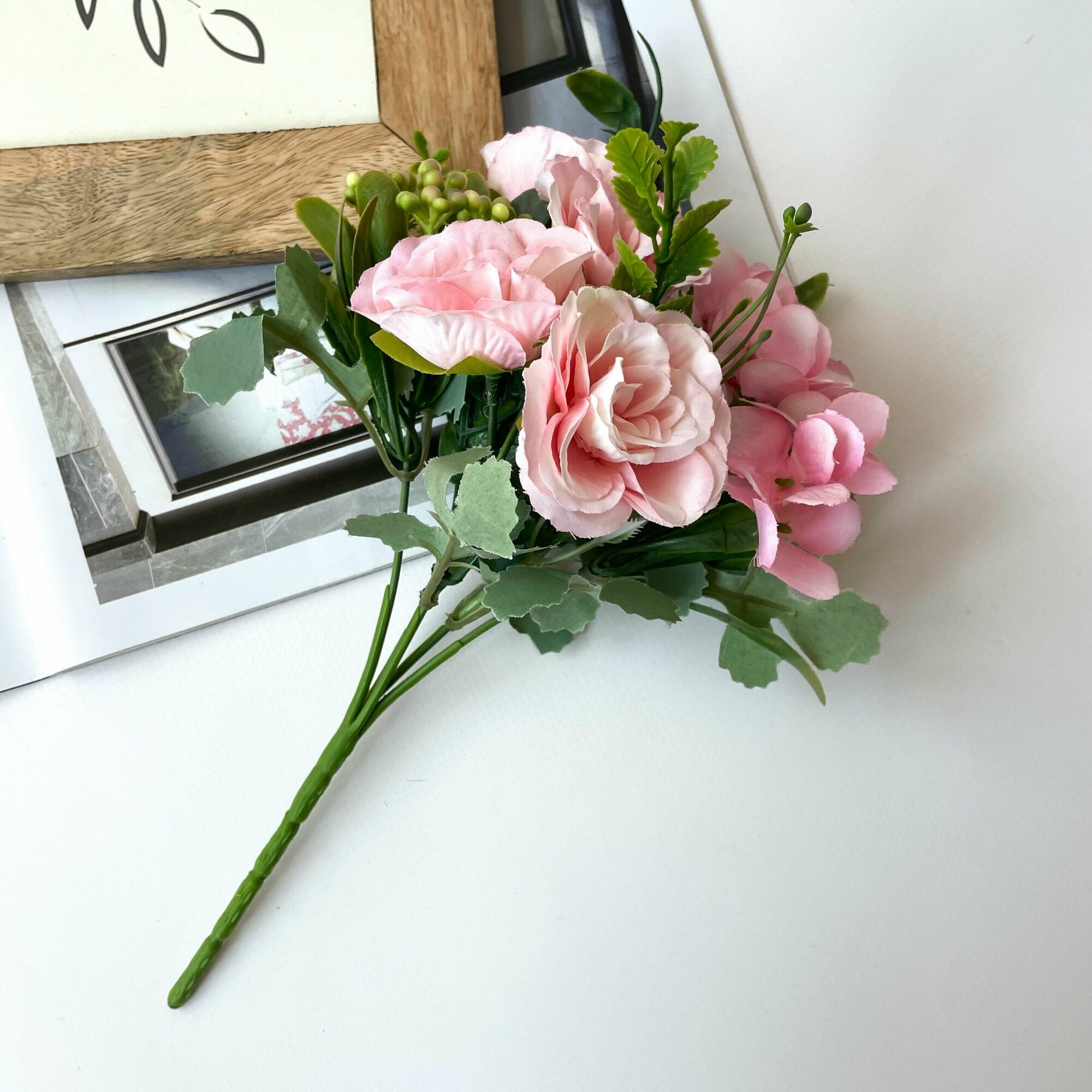 СохранитьРозы искусственные с гортензией и травяной добавкой, Букет цветов, Розовые 27 см, 1 букет интересное: