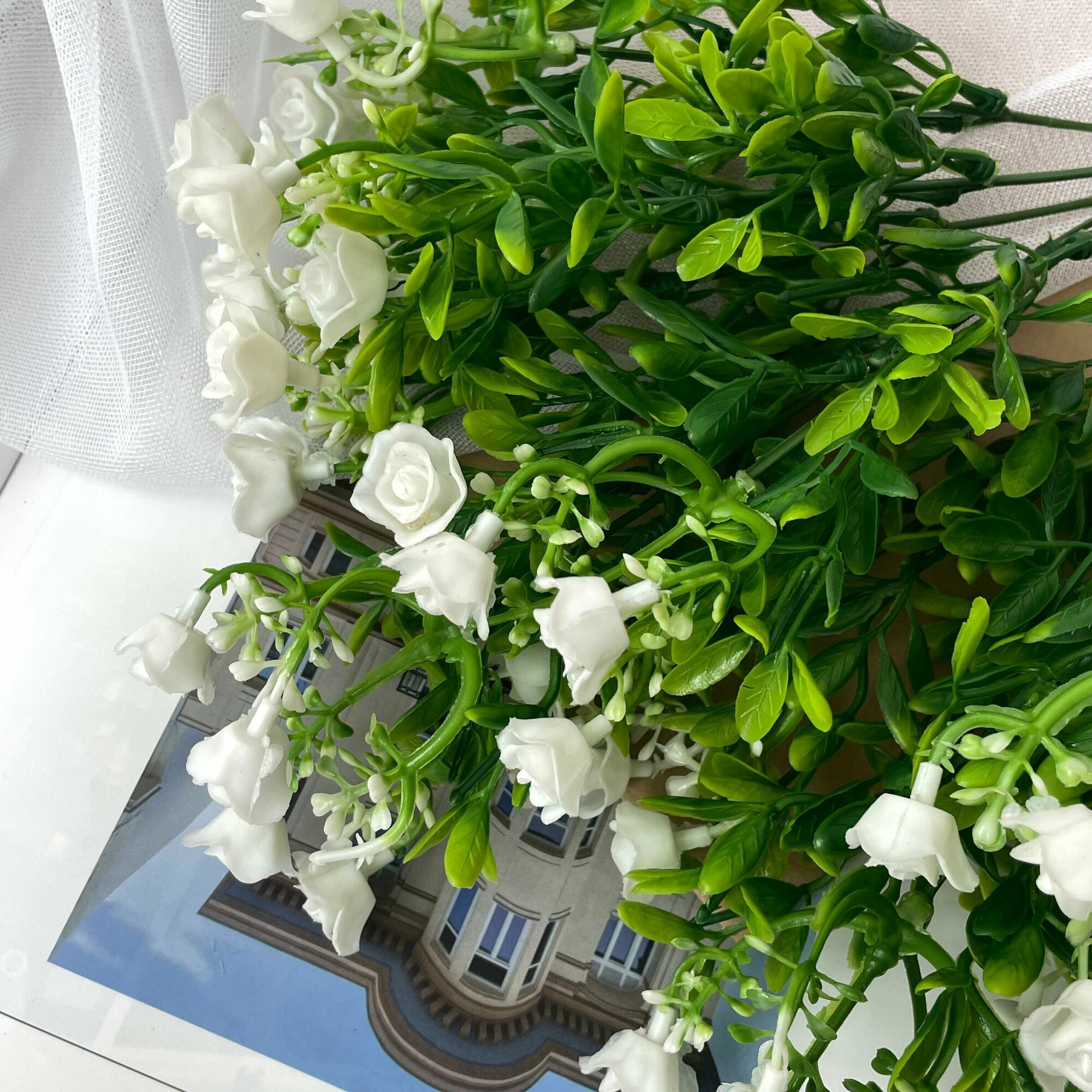Купить Розы пластиковые Белые, мини-бутоны, 5 веток, букет 32 см, 2 шт.