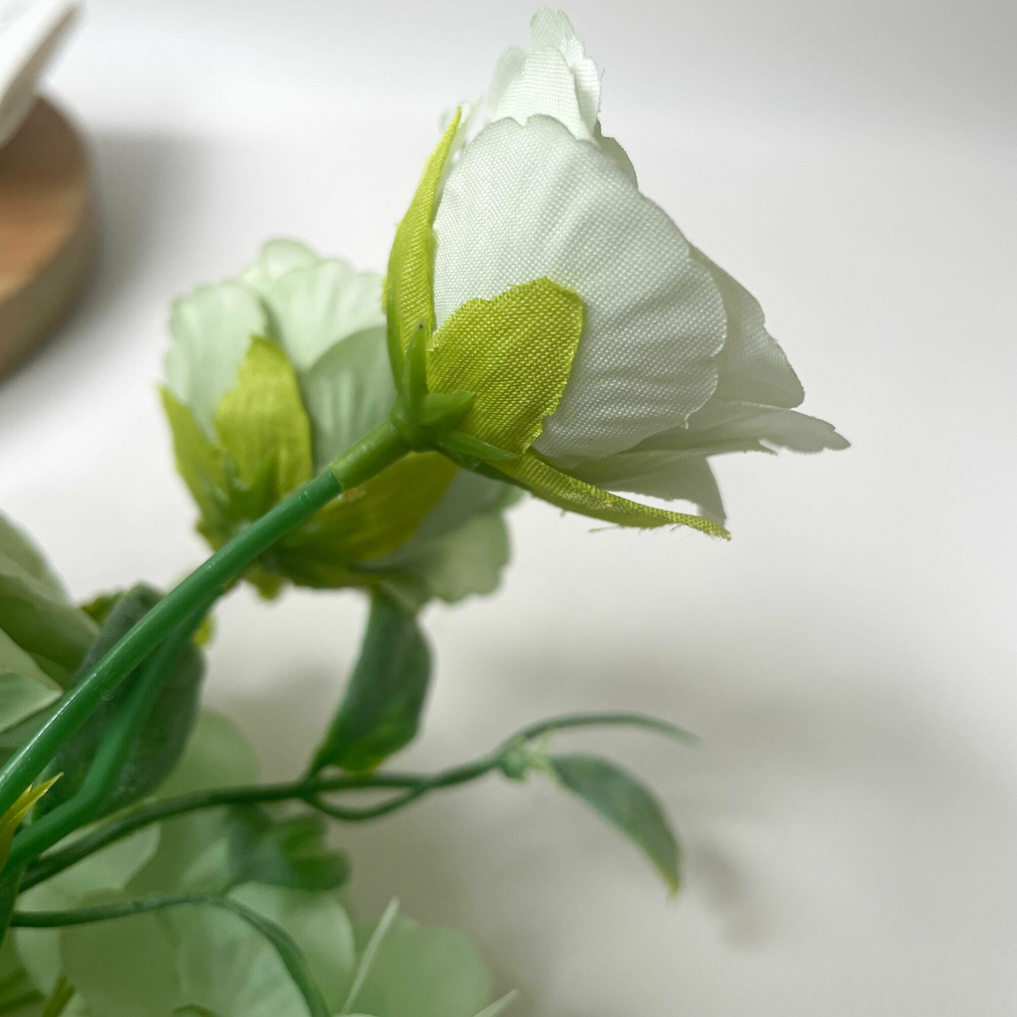 Розы пластиковые Белые, мини-бутоны, 5 веток, букет 32 см, 2 шт.