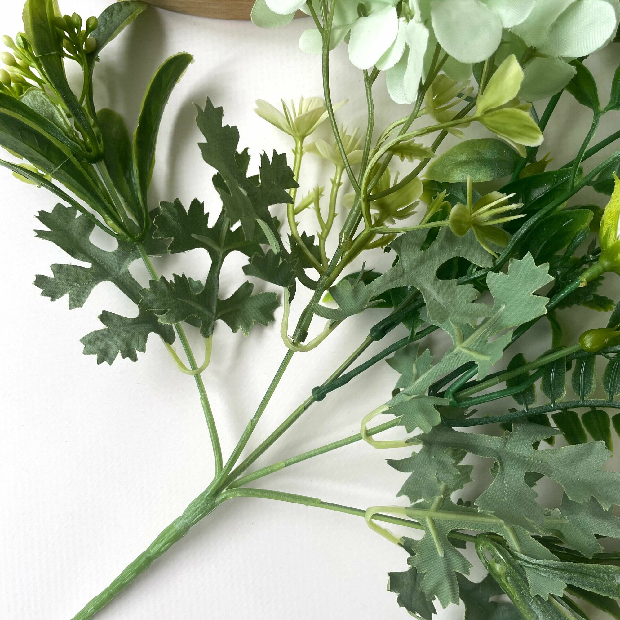 Купить Розы искусственные с гортензией и травяной добавкой, Светло - зеленые 27 см, 1 букет