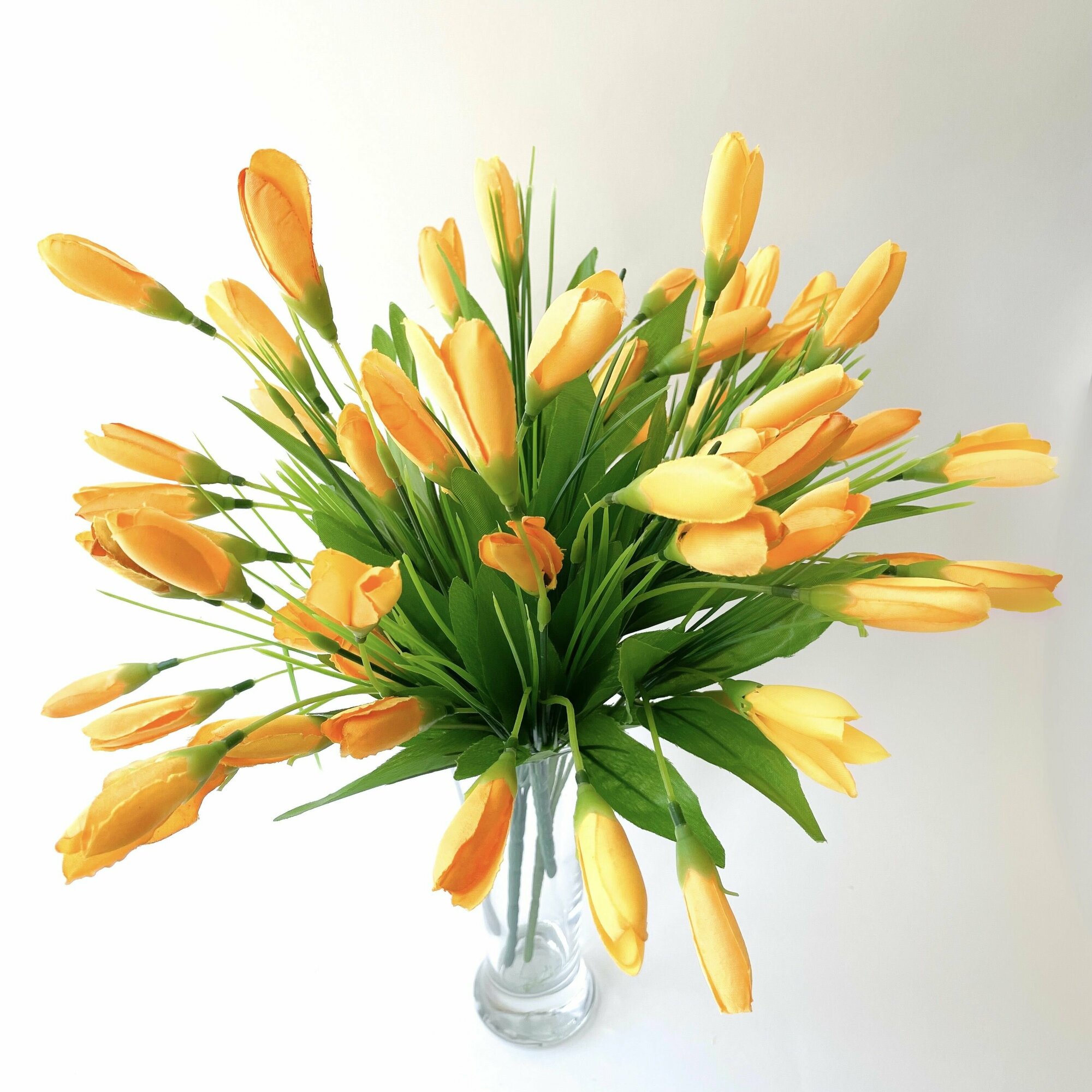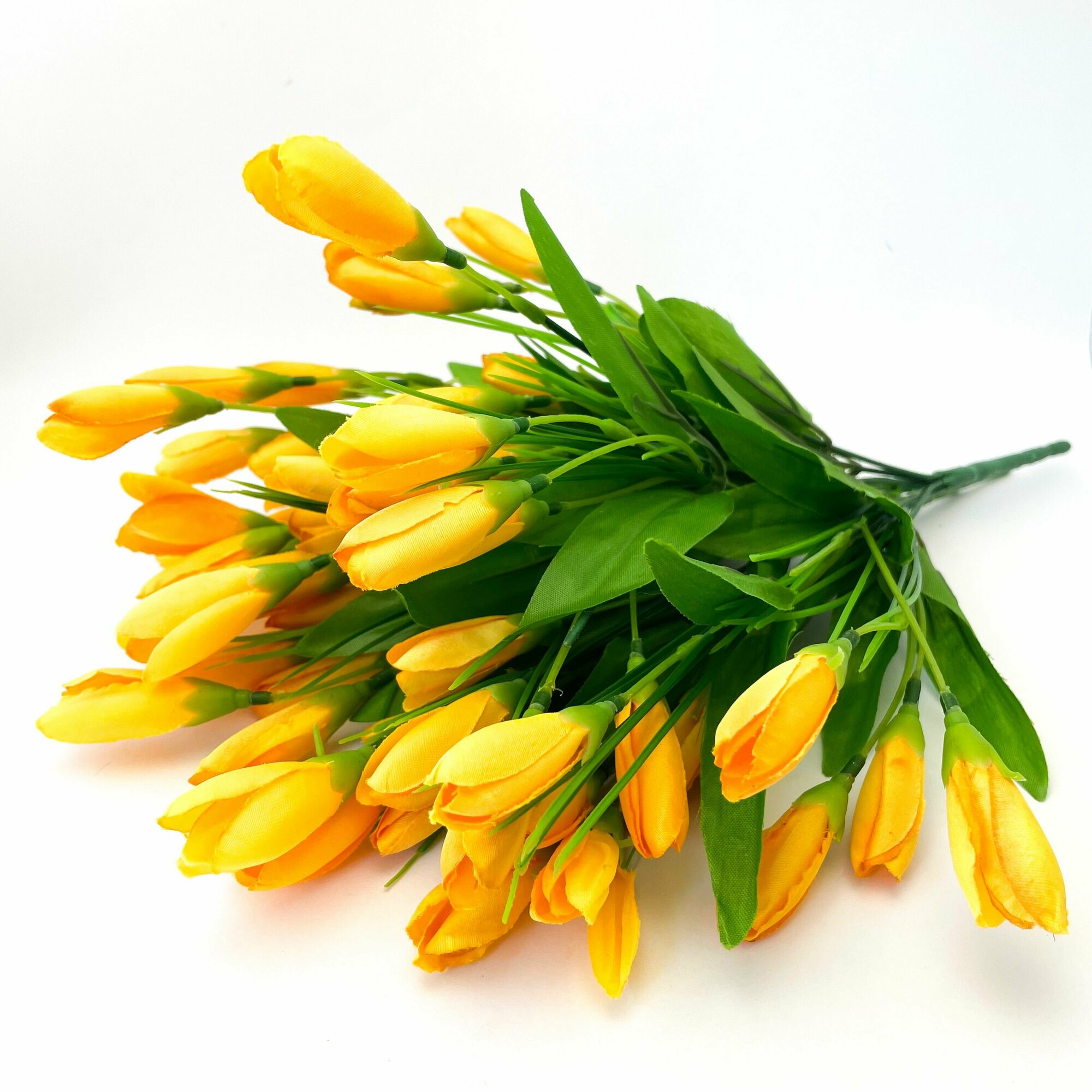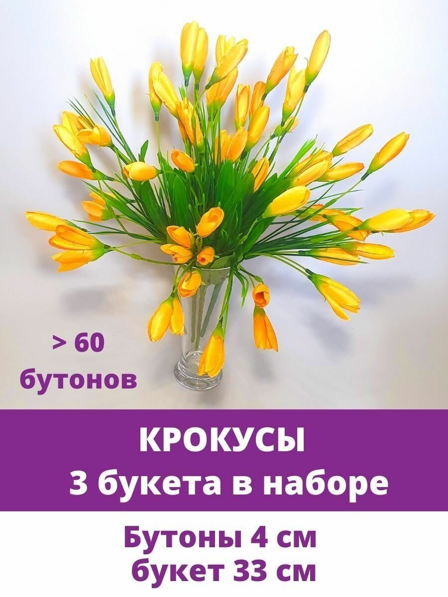 Крокусы-подснежники искусственные, Темно-желтые, набор 3 букета, 33 см, больше 60 бутонов в наборе интересное: