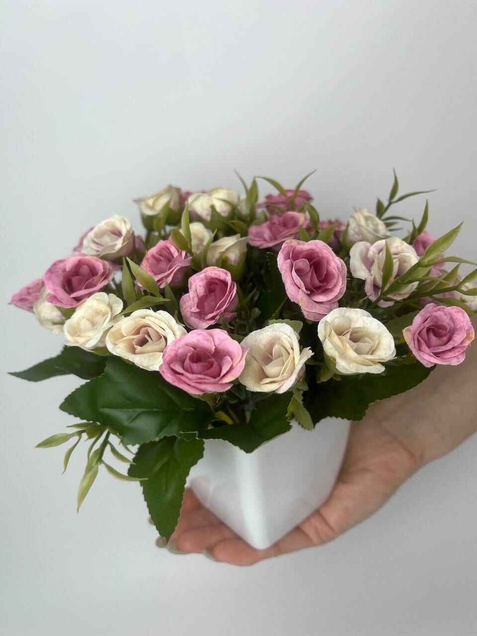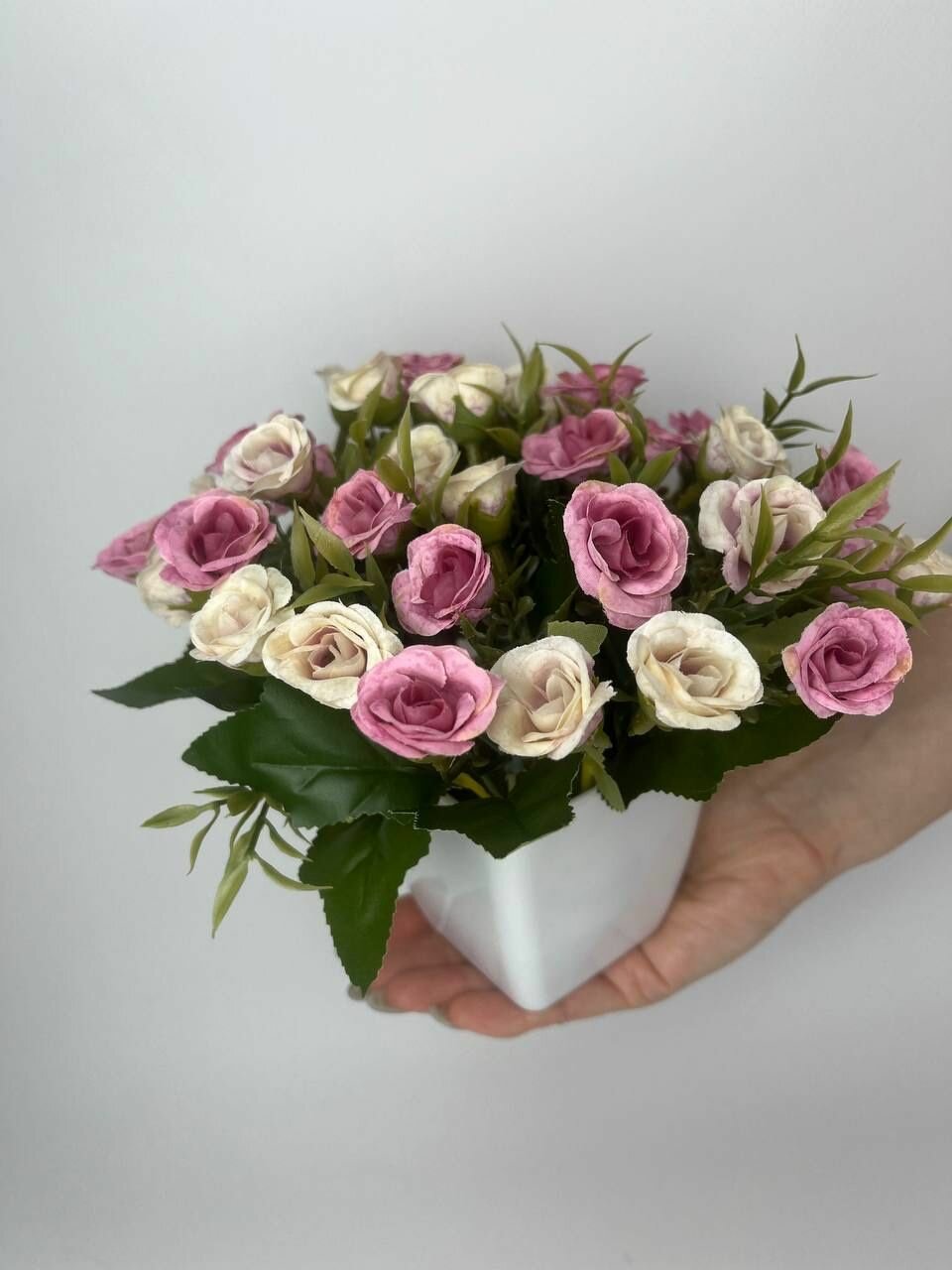 Искусственные цветы букет роз белый в горшке /кашпо композиция цветов для декора