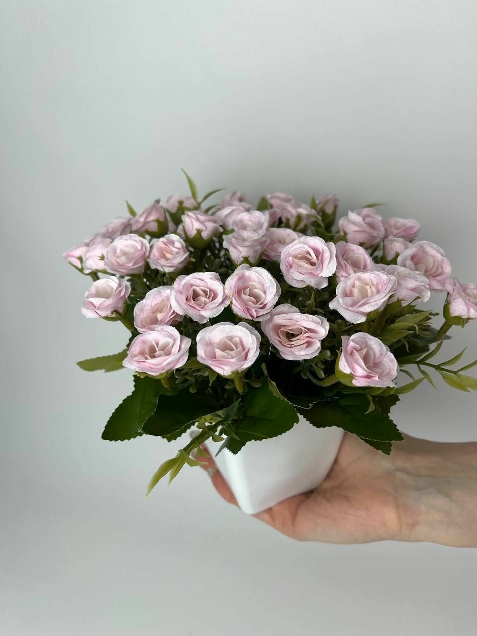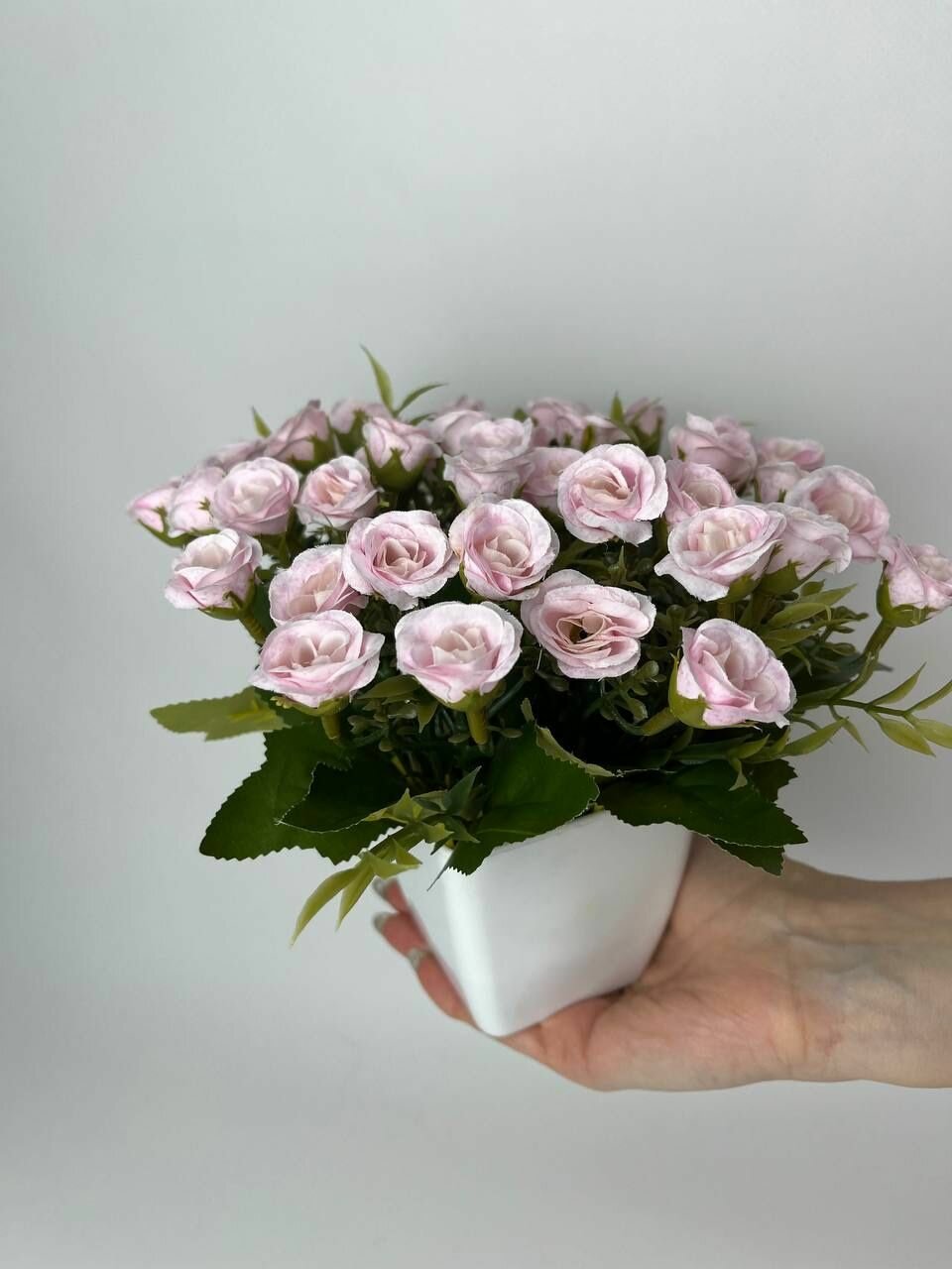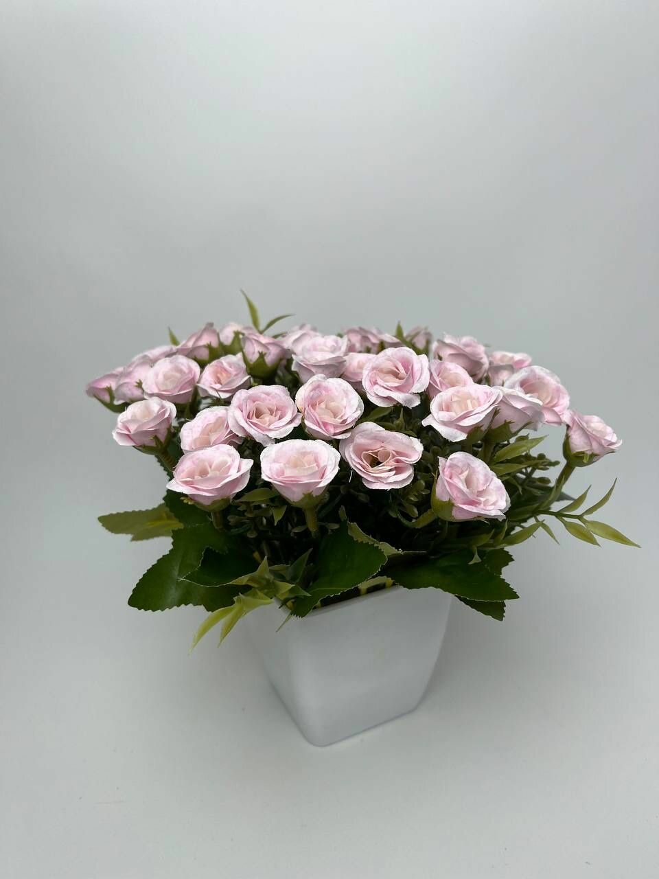 Искусственные цветы букет роз нежно-розовый в горшке /кашпо композиция цветов для декора интересное: