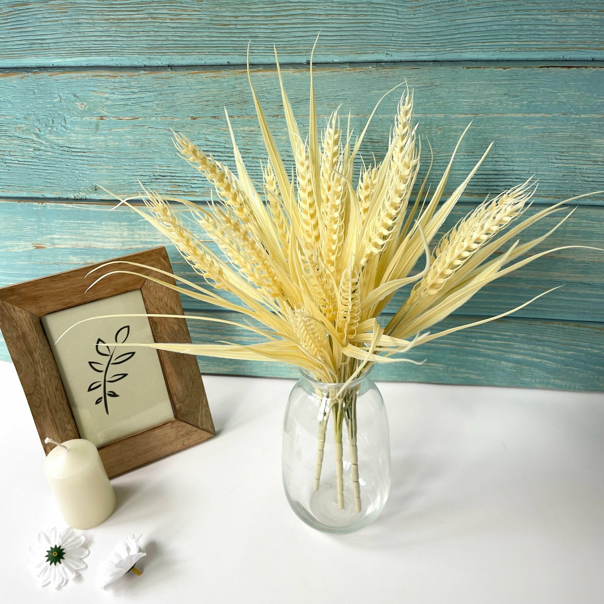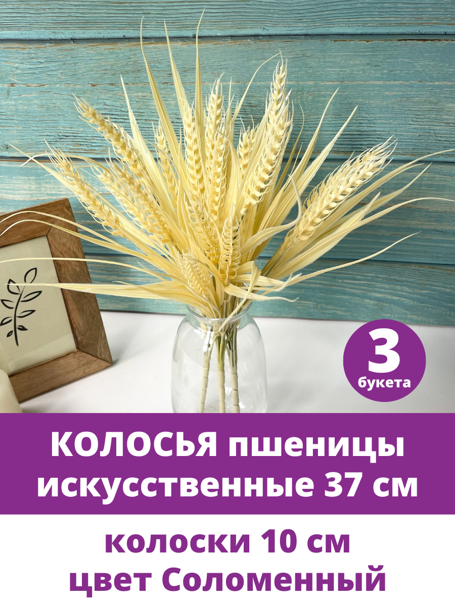 Купить Колосья пшеницы, искусственная зелень, цвет соломенный, набор 3 букета.