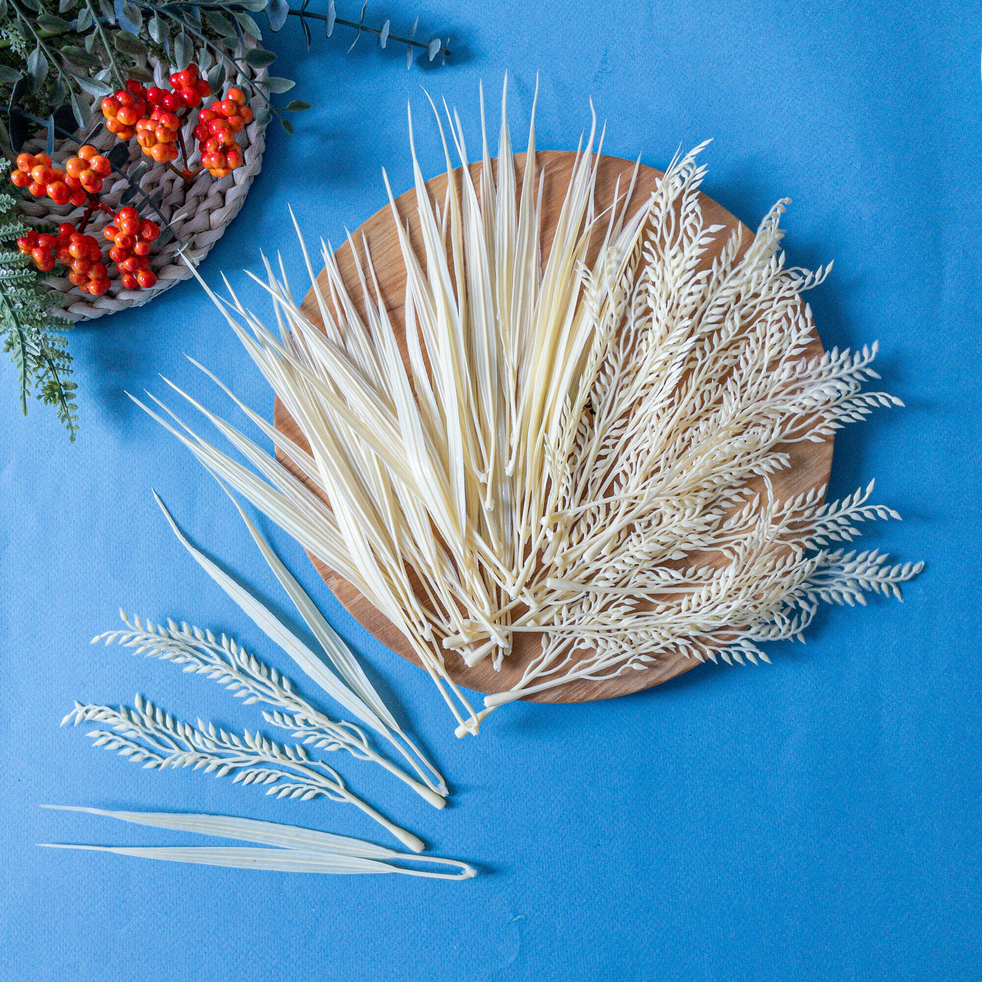 Купить Осенний декор, для дома, интерьера, пшеница 17,5 см, осока 19 см, 20 колосьев и 30 листьев в наборе