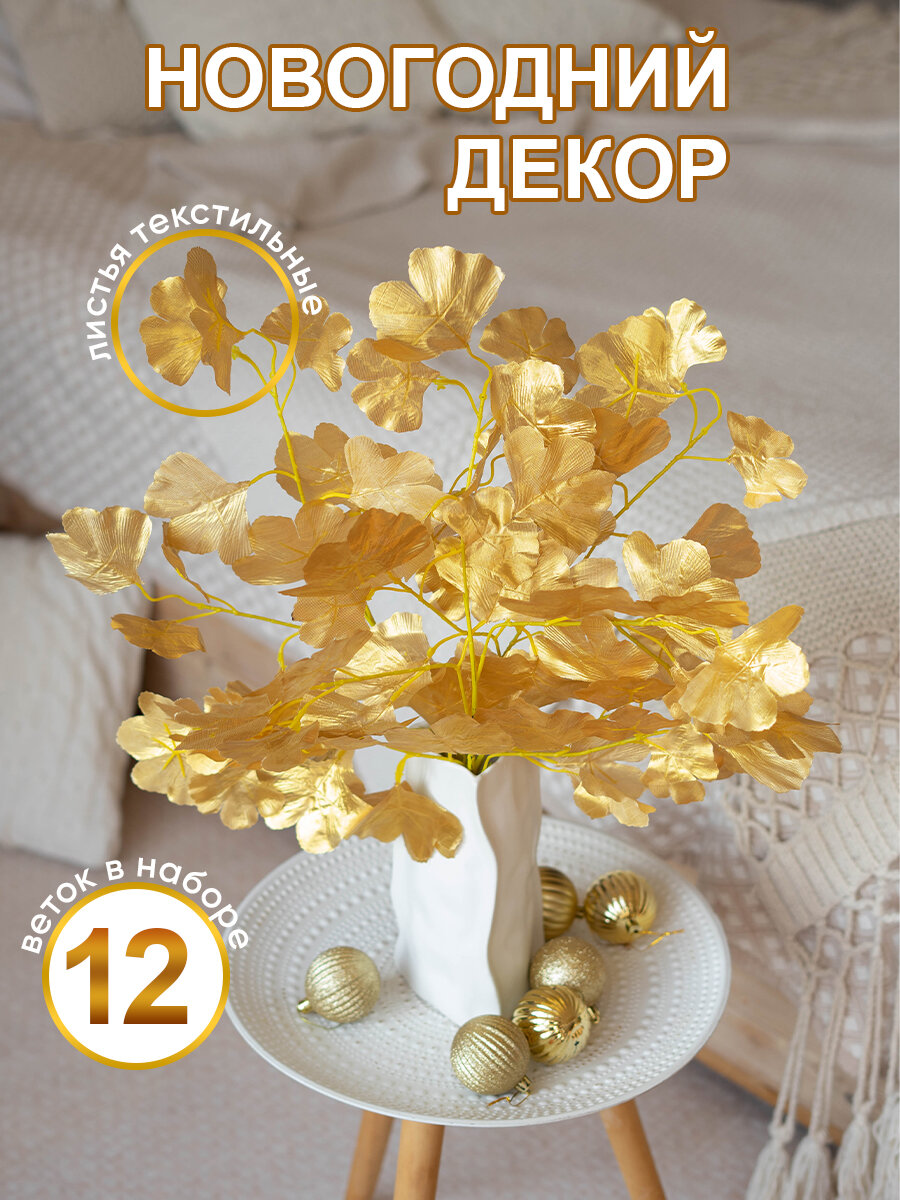 СохранитьЦветы искусcтвенные для декора, Магазин искусственных цветов №1, Набор из 12-ти веток Гинкго золотой, текстиль интересное:
