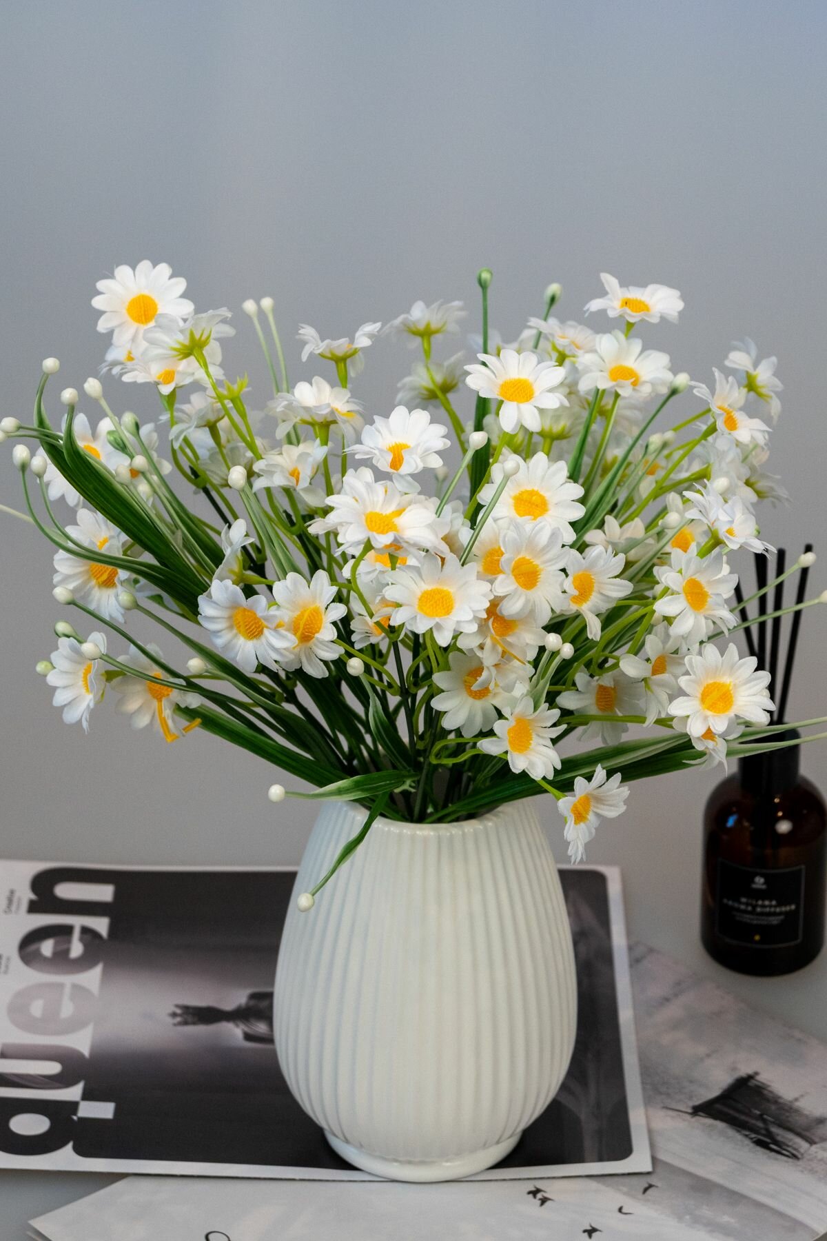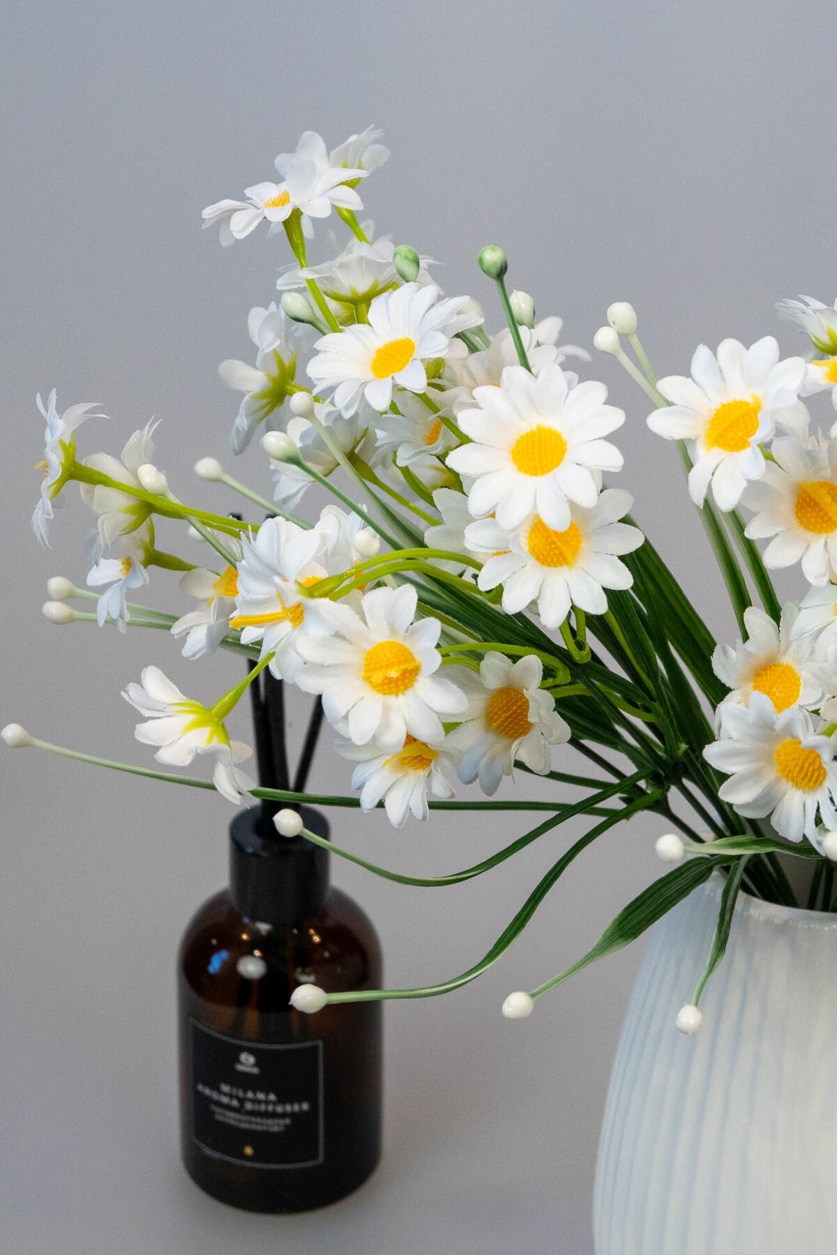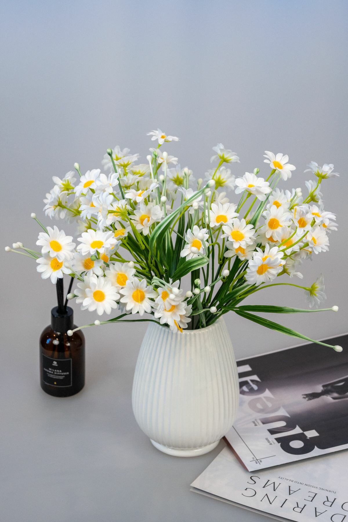Купить Искусственные цветы для декора Ромашки белые с зеленью букет 35 см 3 букета по 5 веток