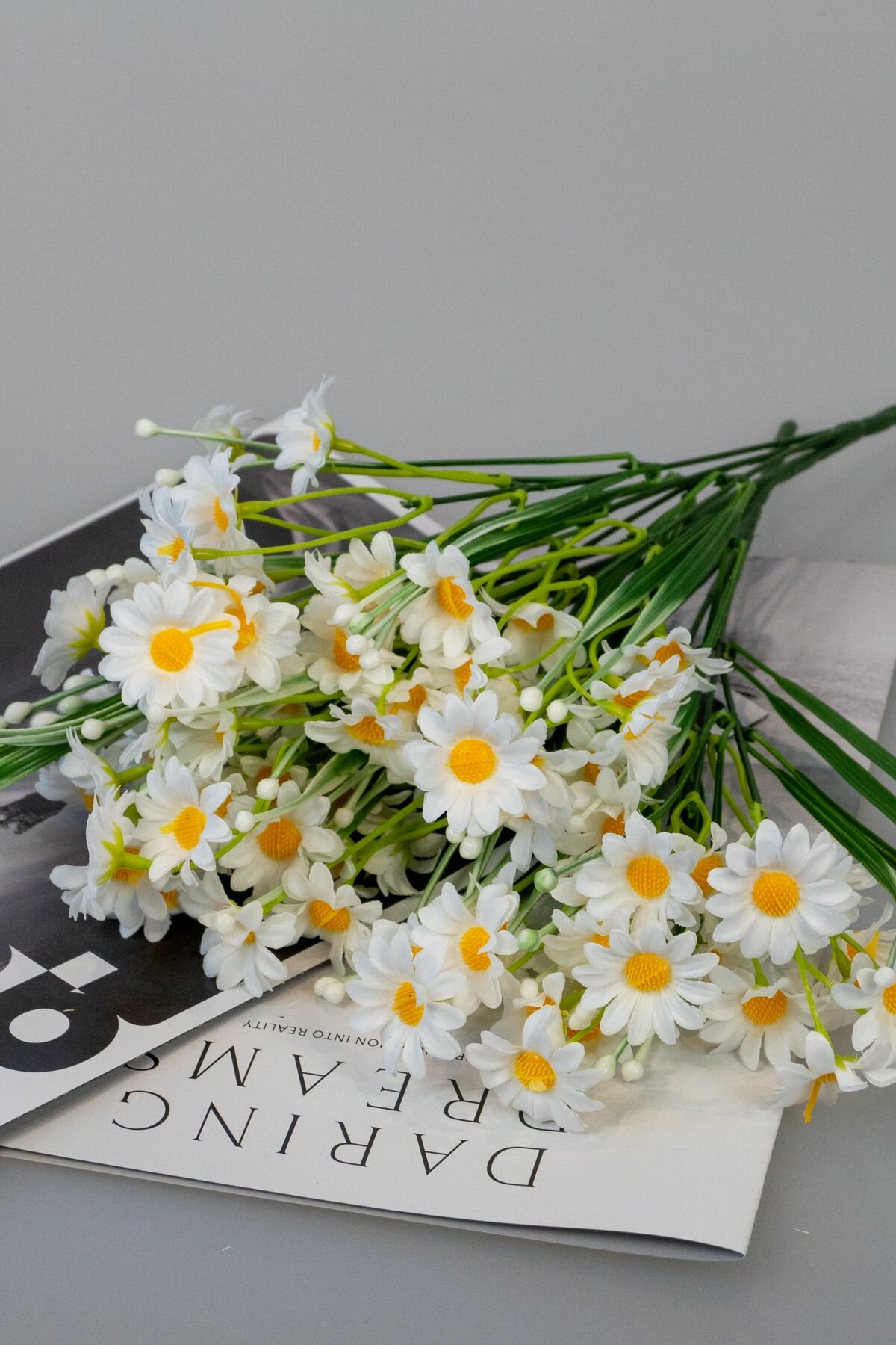 Искусственные цветы для декора Ромашки белые с зеленью букет 35 см 3 букета по 5 веток интересное: