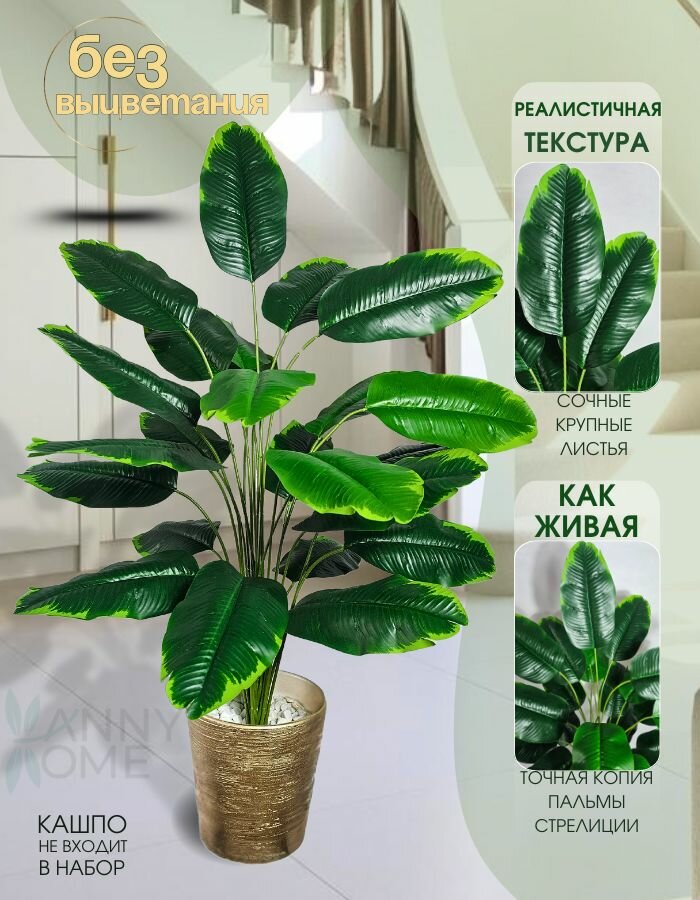 Искусственные цветы для декора Anny Home, растения и цветы для интерьера, декоративная пальма Стрелиция без кашпо интересное: