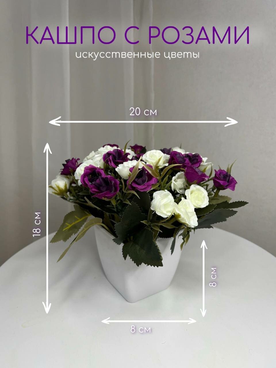 Ниже Вы можете прочитать отзывы на Розы в горшке фиолетово-белый, кашпо, композиция цветов для декора, ознакомится с подробными характеристиками, посмотреть интересные обзоры и фотографии на Розы в горшке фиолетово-белый, кашпо, композиция цветов для декора.