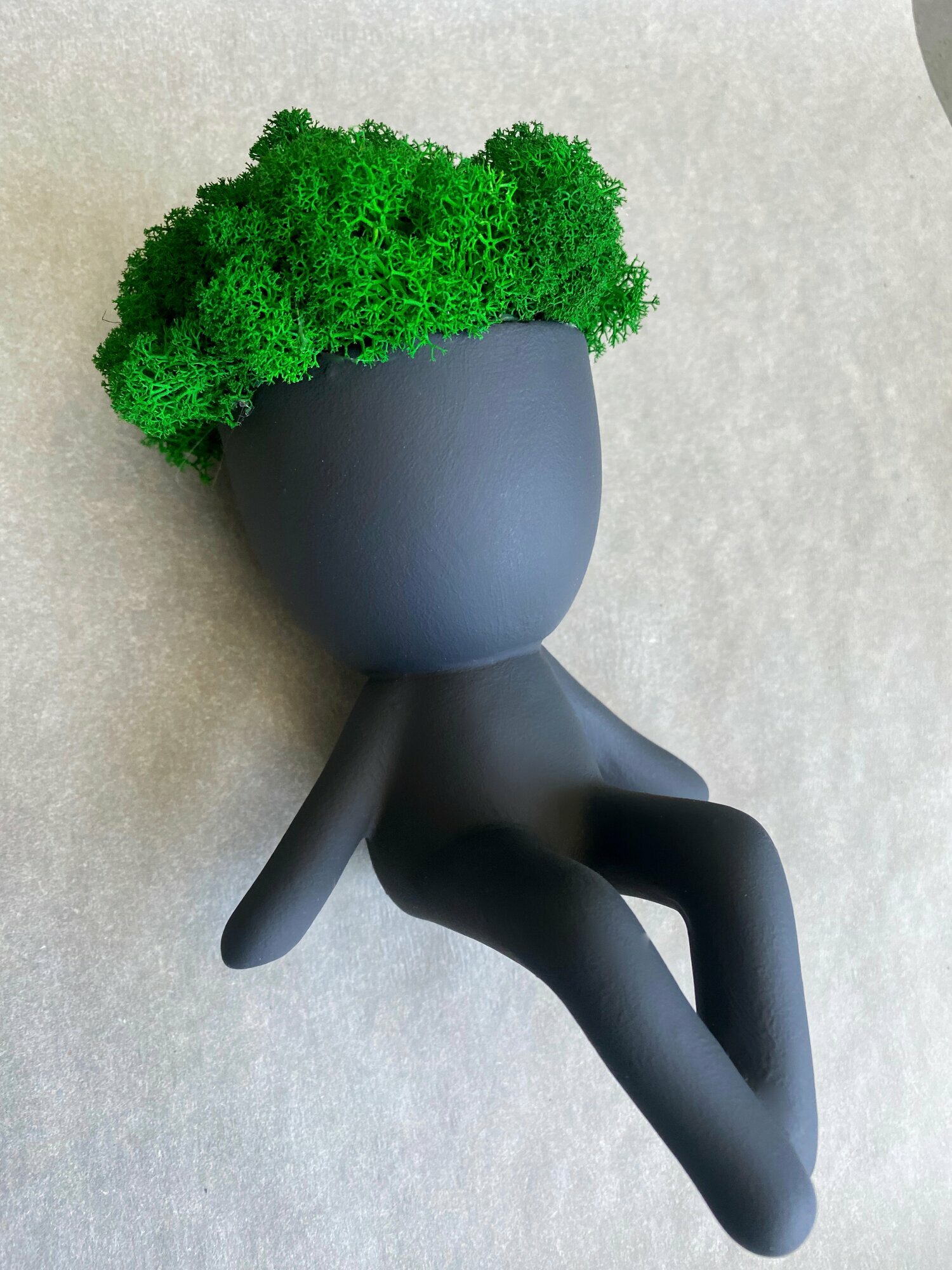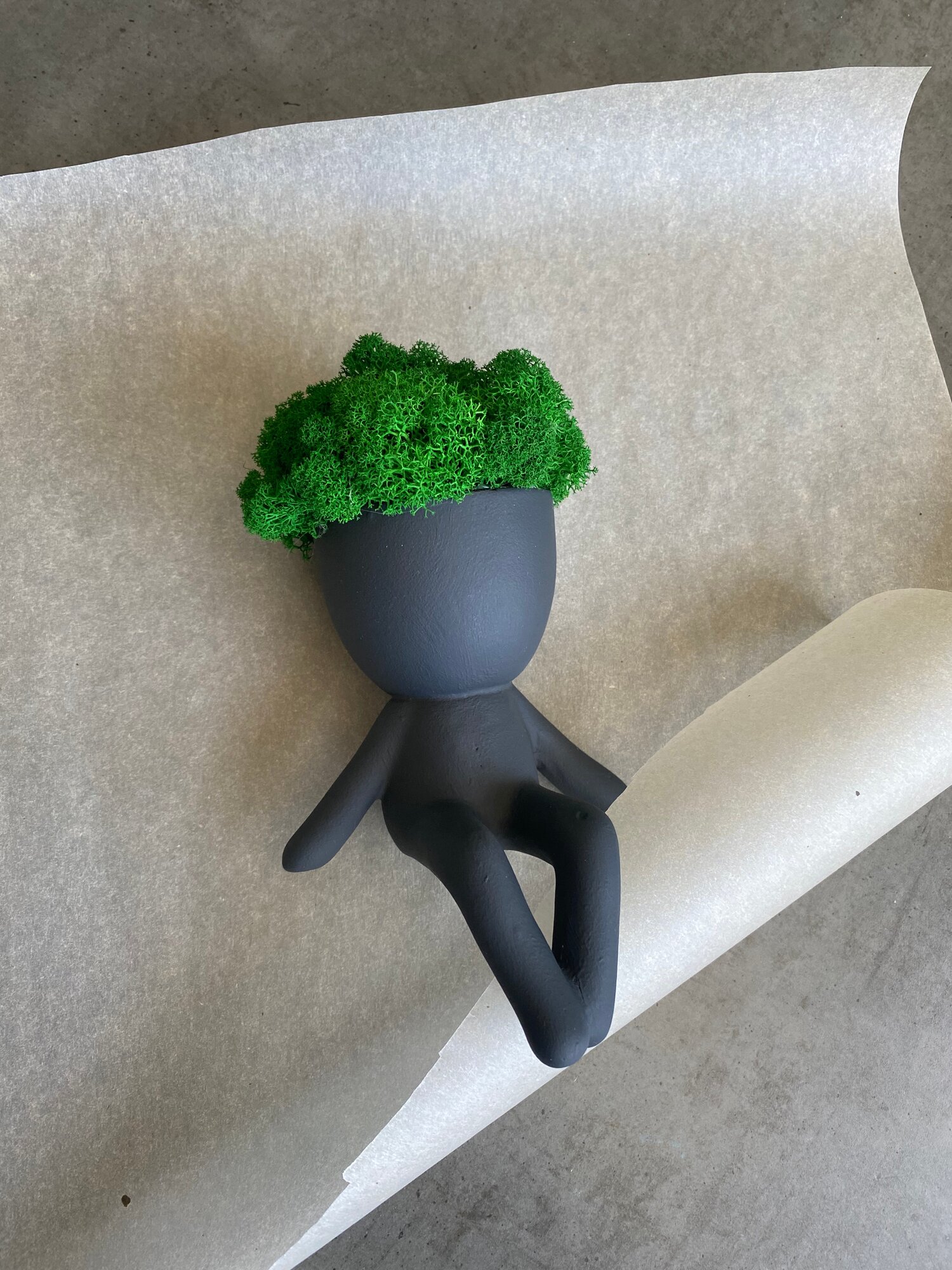 Купить Кашпо Человечек сидящий с стабилизированным мхом черное, 17 см