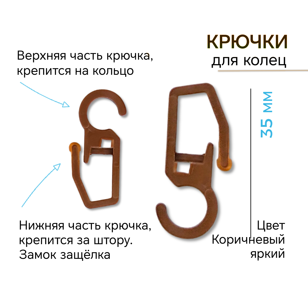 Купить Кольца для штор, крючки для штор . Коричневый яркий. Набор 25 шт в комплекте.