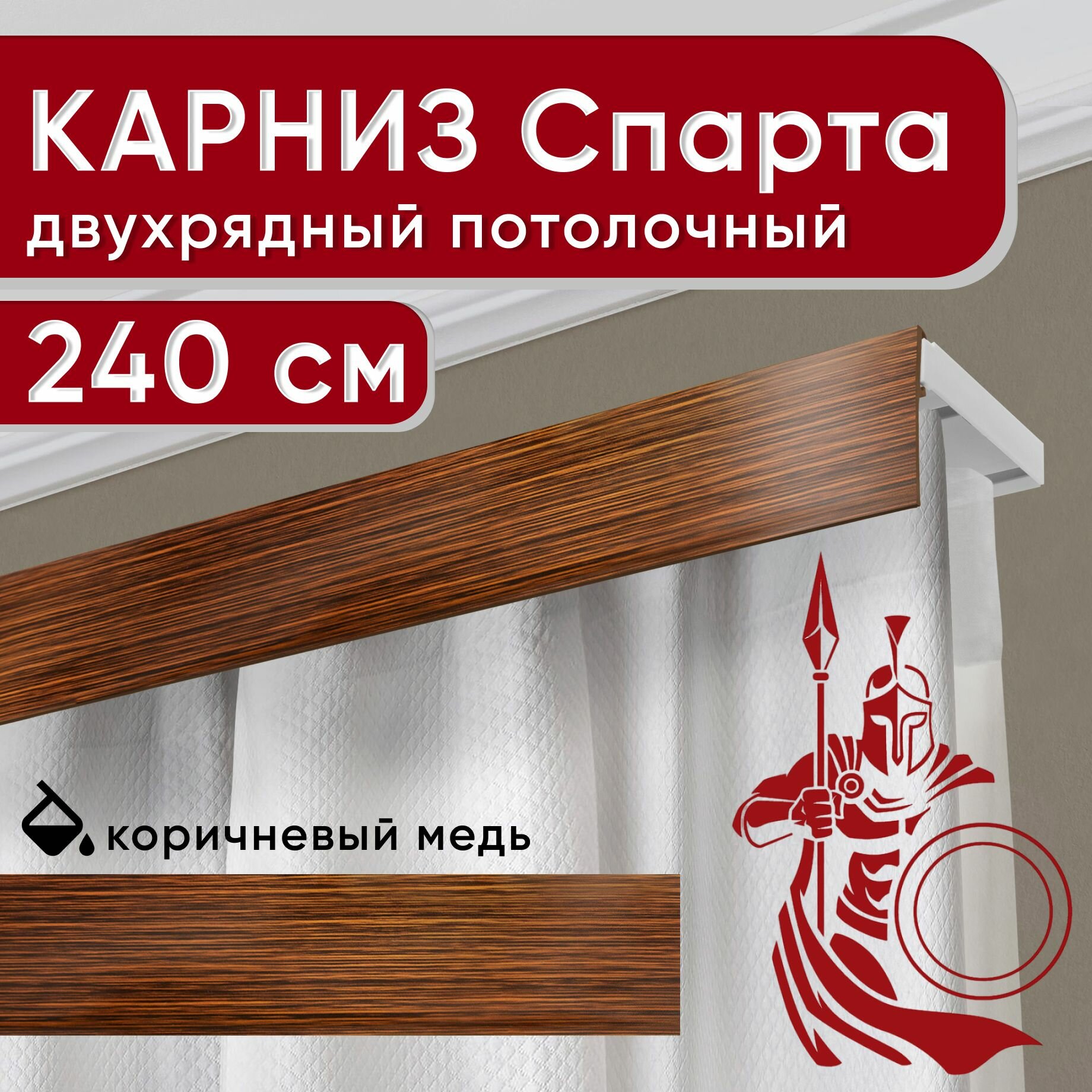 СохранитьКарниз двухрядный потолочный с декоративной планкой, Спарта, коричневый/медь 240 см интересное: