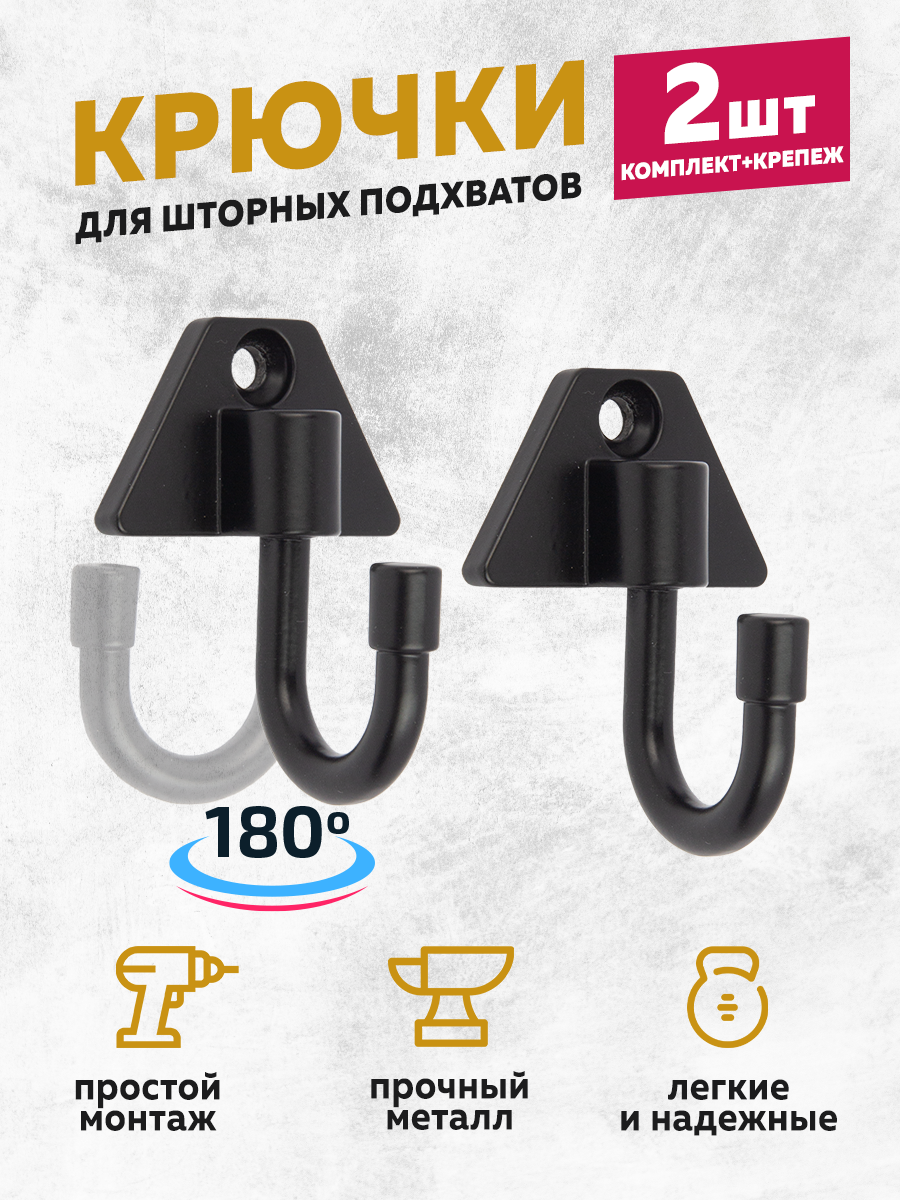 Держатель для штор Mirtex металлический, черный матовый - 2 шт.