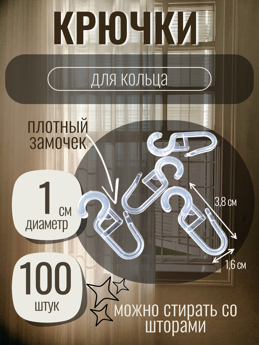 Крючки (серьга) для кольца (диаметр 1см) для штор, тюли, портьер, блэкаут, карниза (прозрачные, 100 штук) интересное: