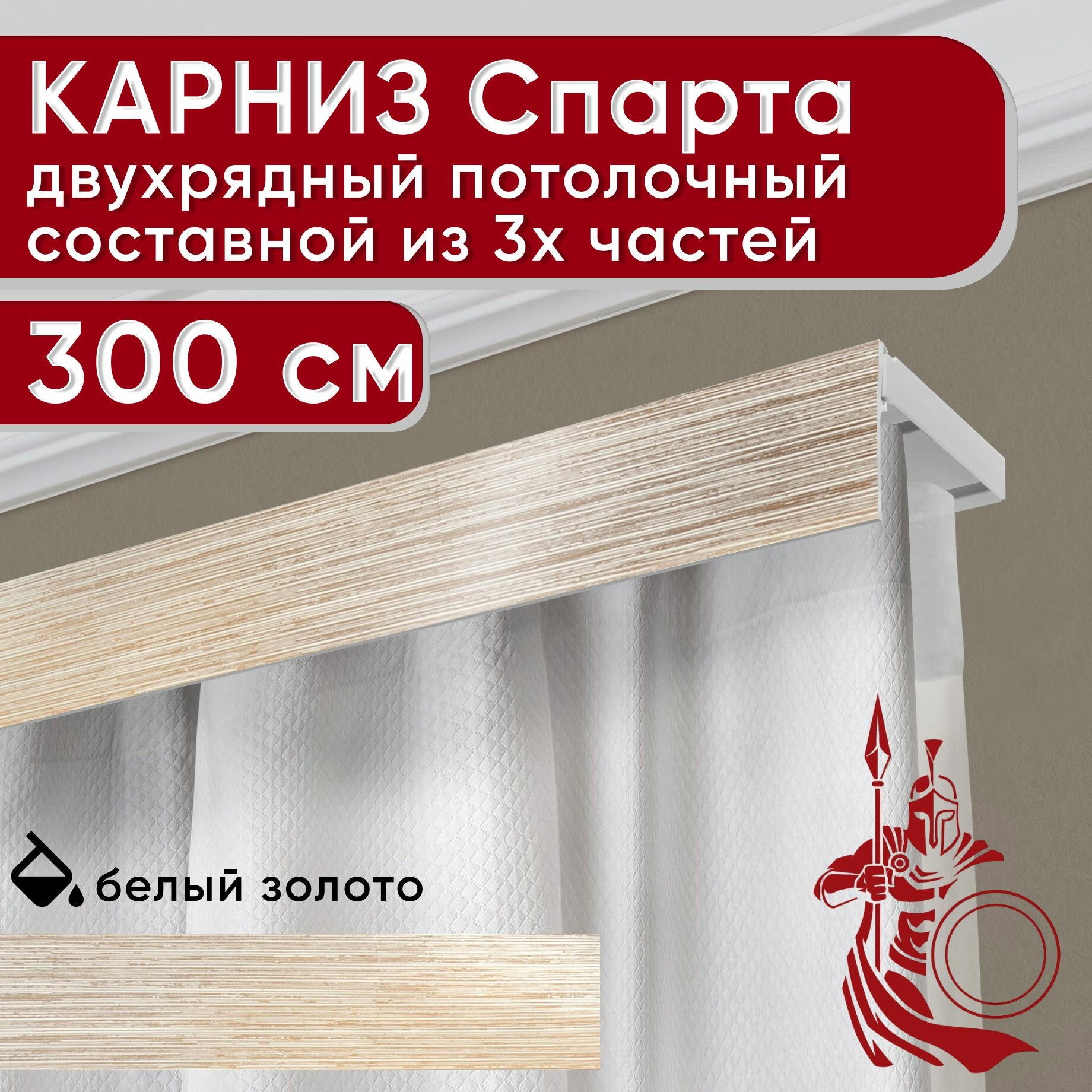 СохранитьКарниз двухрядный потолочный пластмассовый с декоративной планкой Спарта, белый/золото 300 см интересное: