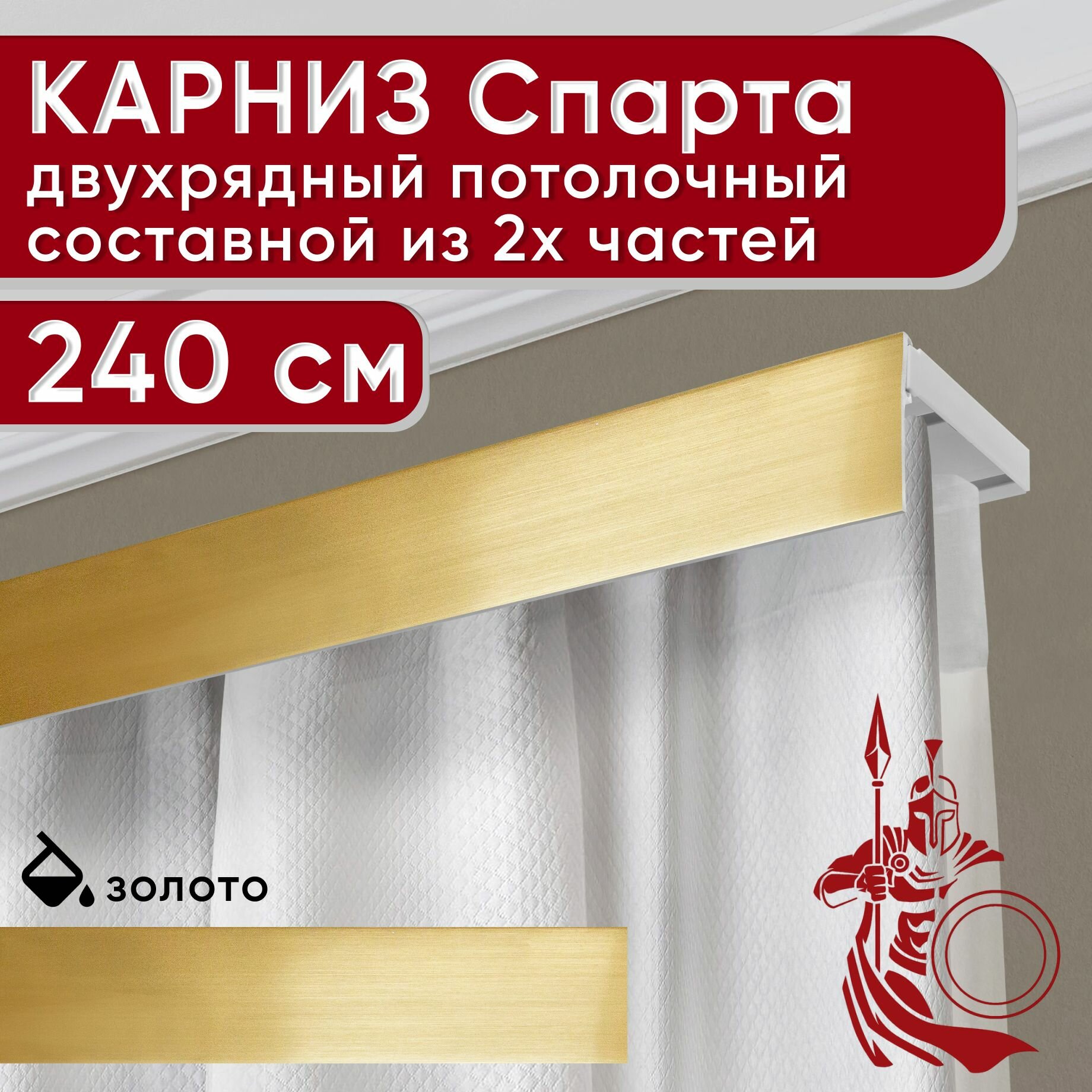 Ниже Вы можете прочитать отзывы на Карниз двухрядный потолочный пластмассовый с декоративной планкой Спарта, золото 240 см, ознакомится с подробными характеристиками, посмотреть интересные обзоры и фотографии на Карниз двухрядный потолочный пластмассовый с декоративной планкой Спарта, золото 240 см.