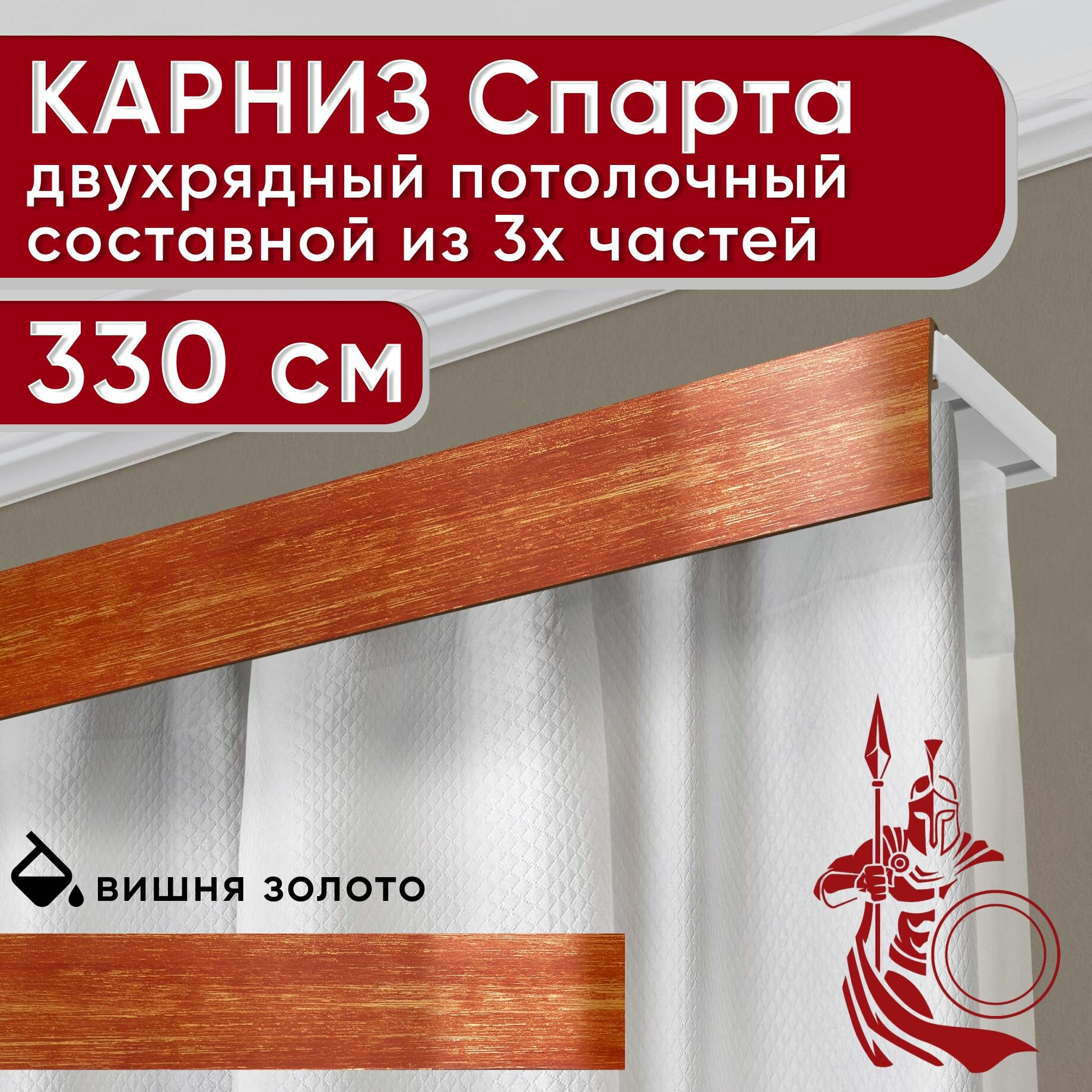 Ниже Вы можете прочитать отзывы на Карниз двухрядный потолочный пластмассовый с декоративной планкой Спарта, вишня/золото 330 см, ознакомится с подробными характеристиками, посмотреть интересные обзоры и фотографии на Карниз двухрядный потолочный пластмассовый с декоративной планкой Спарта, вишня/золото 330 см.