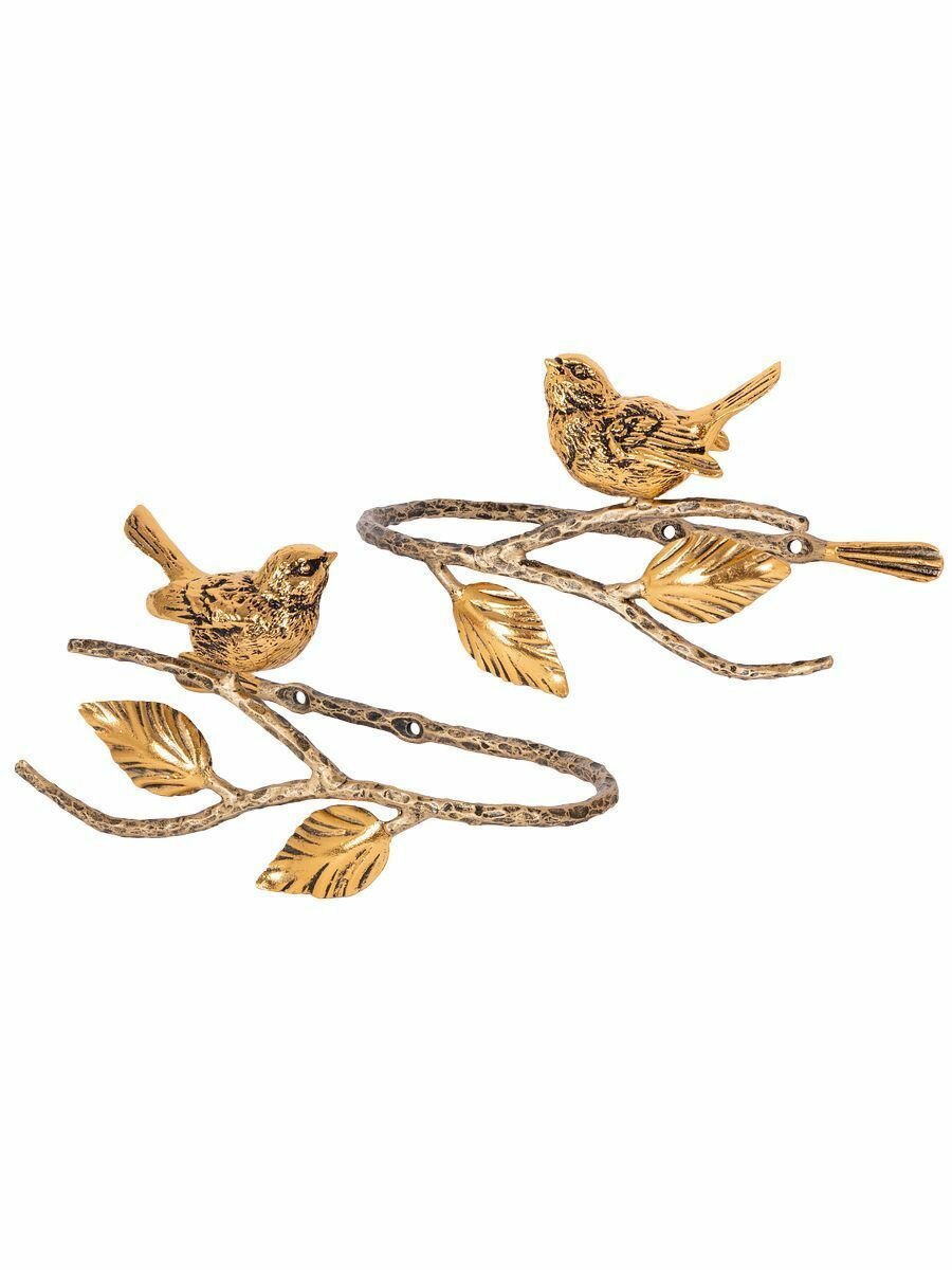 Купить Фигурные крючки подхваты Bogacho Терра в виде птичек на ветке для фиксации штор, набор 2 штуки