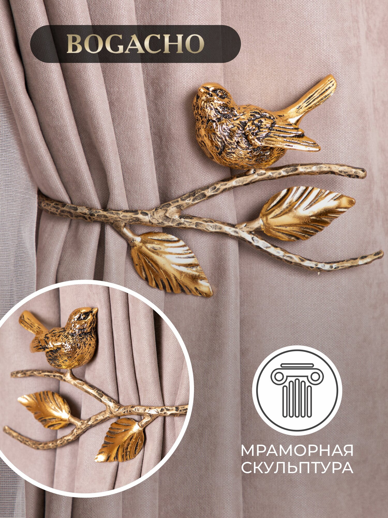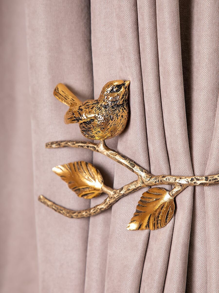 Фигурные крючки подхваты Bogacho Терра в виде птичек на ветке для фиксации штор, набор 2 штуки интересное: