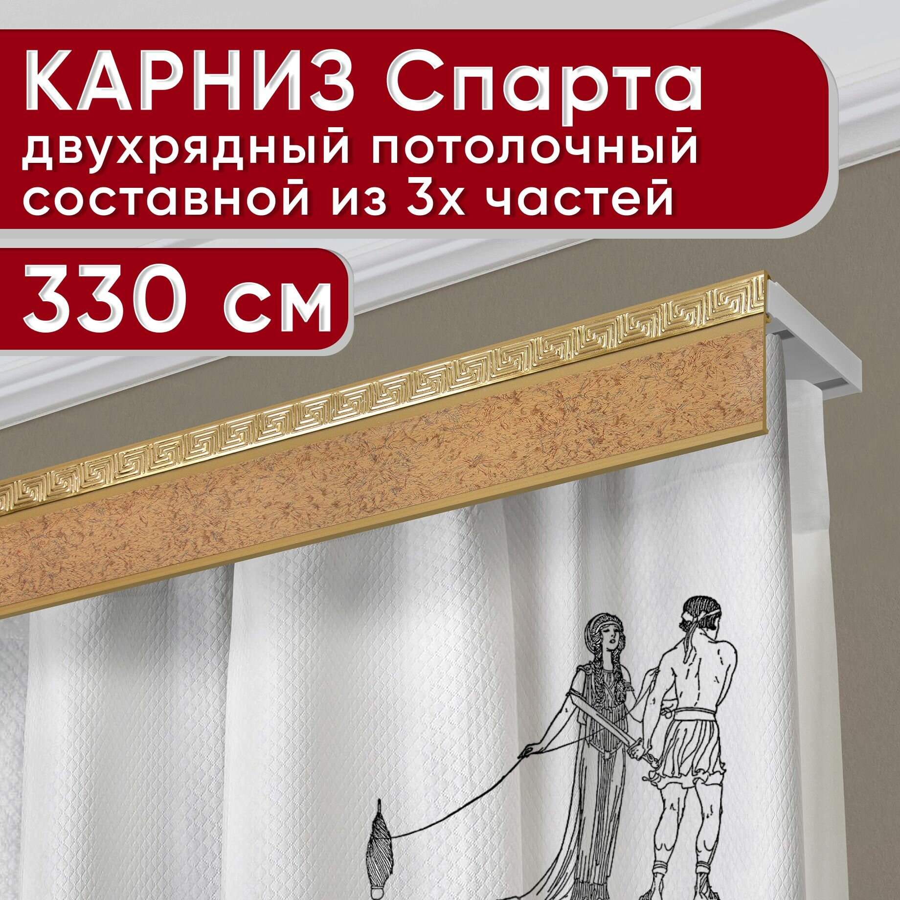 Купить Карниз двухрядный потолочный пластмассовый с декоративной планкой Ариадна, песок бежевый 330 см