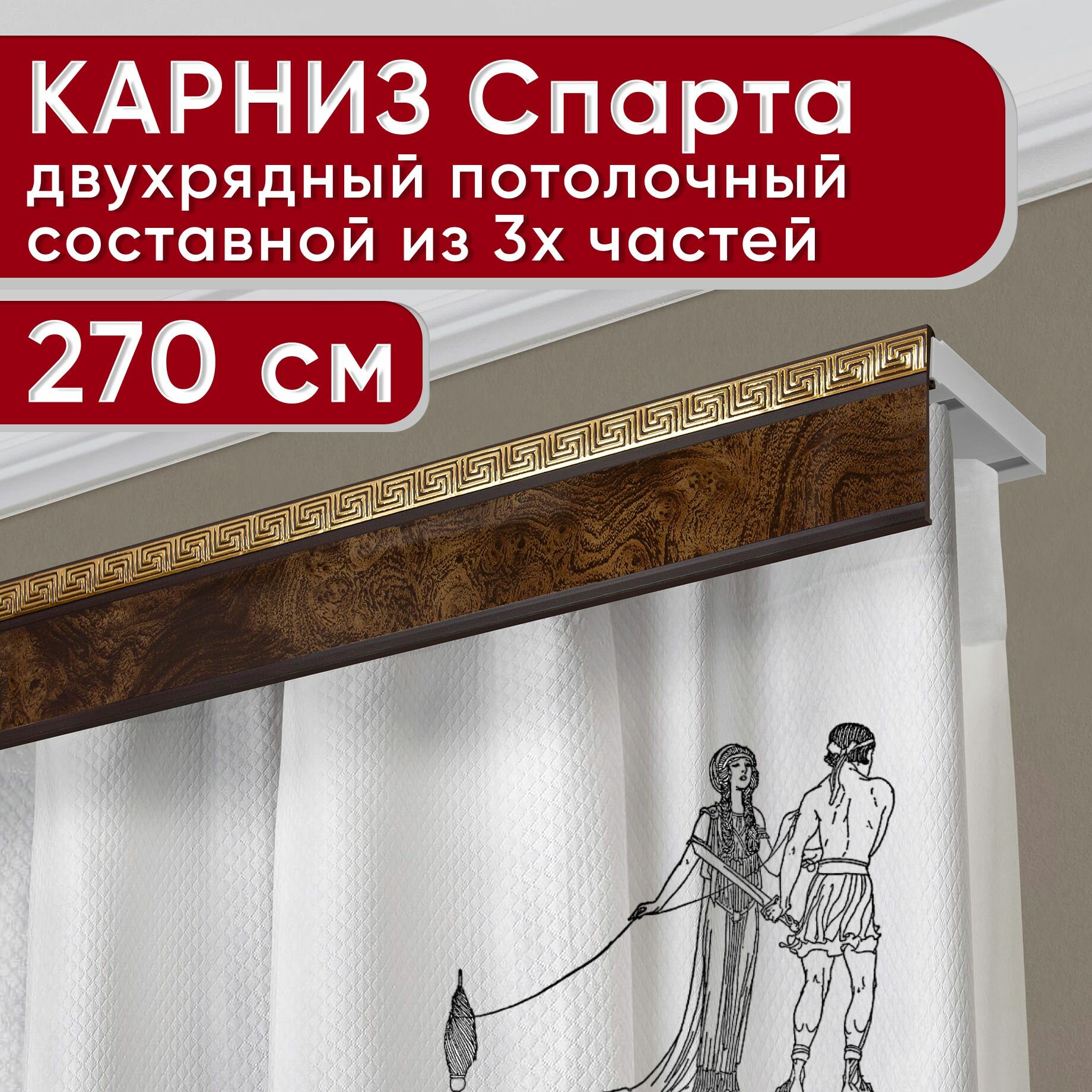 Карниз двухрядный потолочный пластмассовый с декоративной планкой Ариадна, орех 270 см