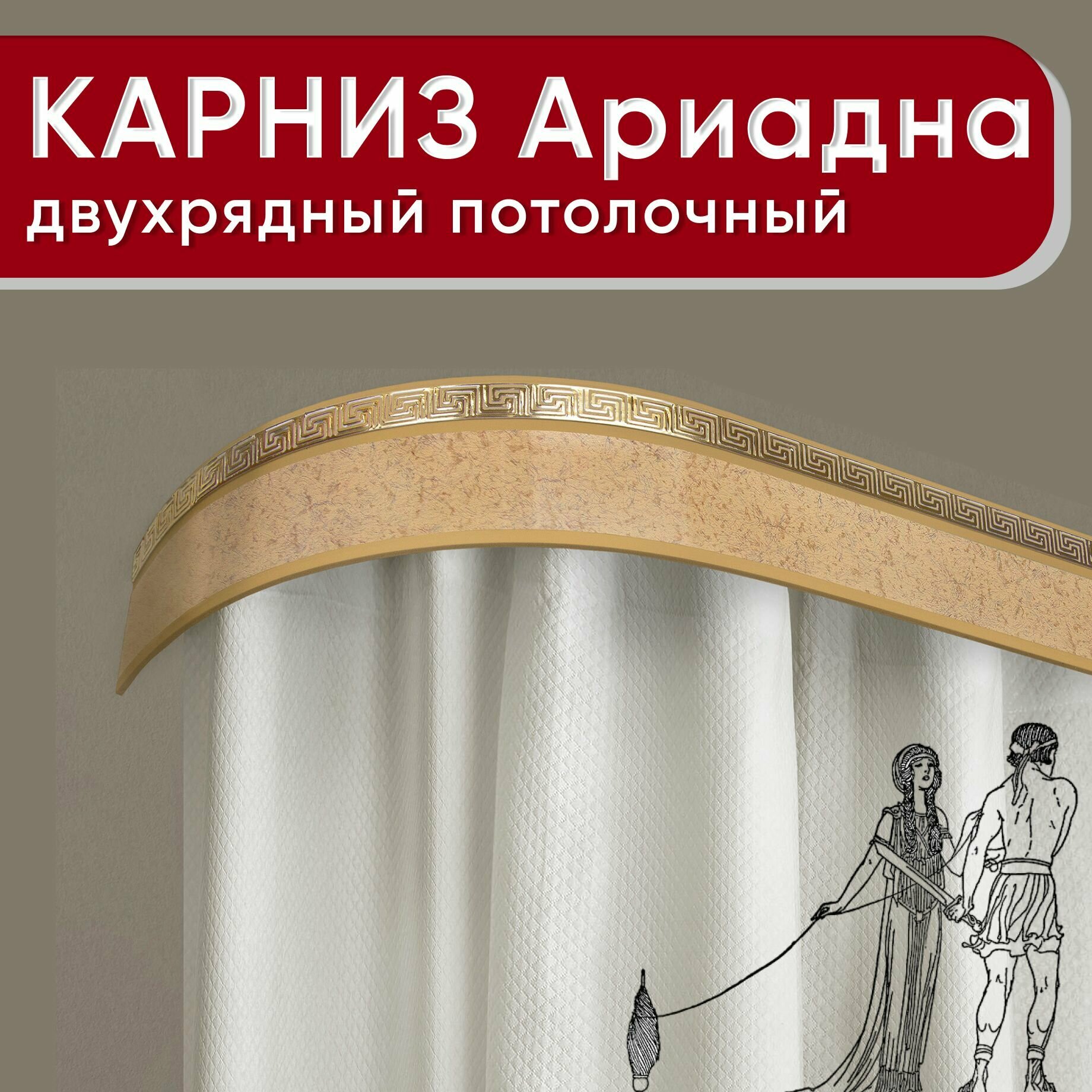 Карниз УЮТ двухрядный потолочный с декоративной планкой (бленда 55мм), Ариадна из двух частей песок бежевый 240см
