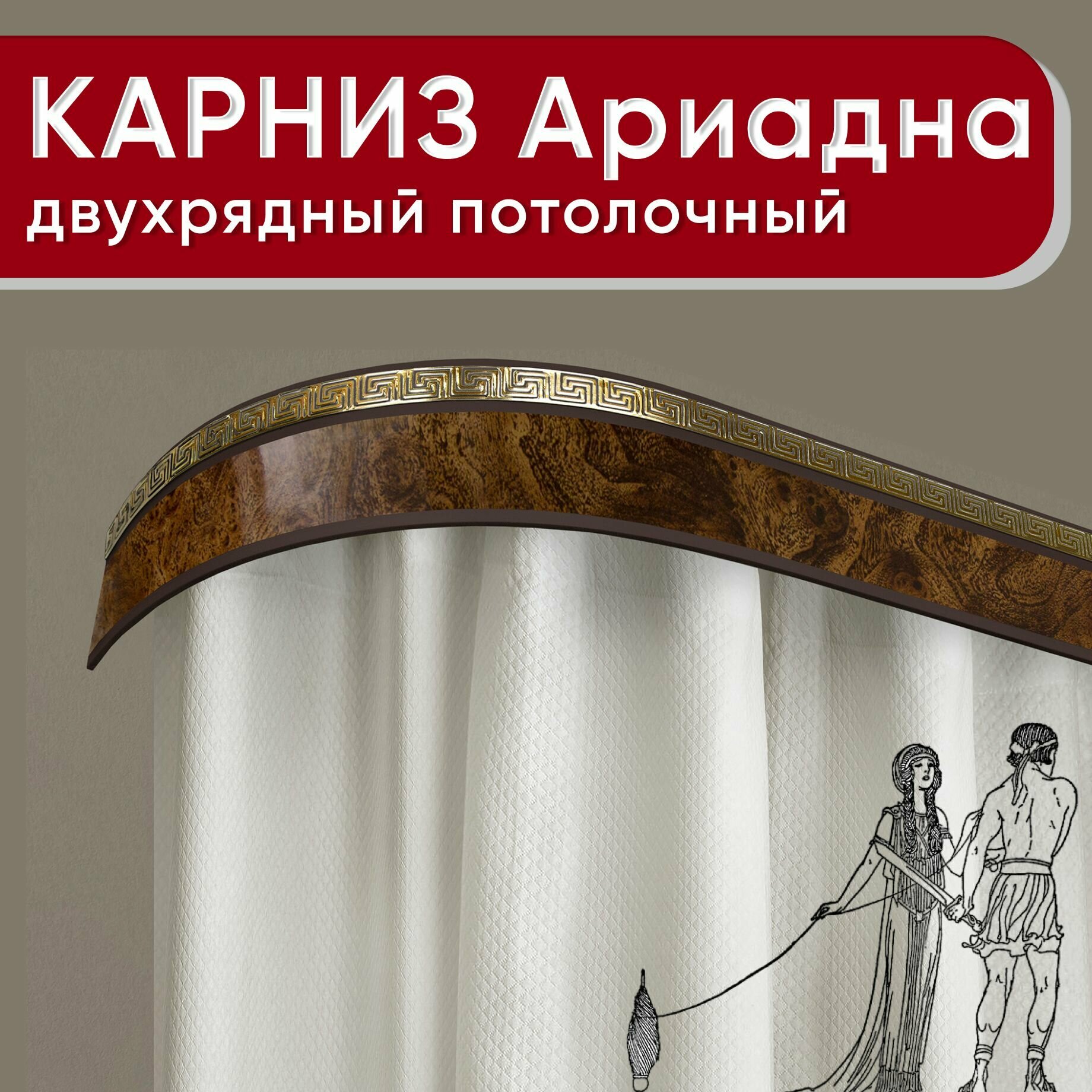 Купить Карниз УЮТ двухрядный потолочный с декоративной планкой (бленда 55мм), шинный, Ариадна карельская береза 180см