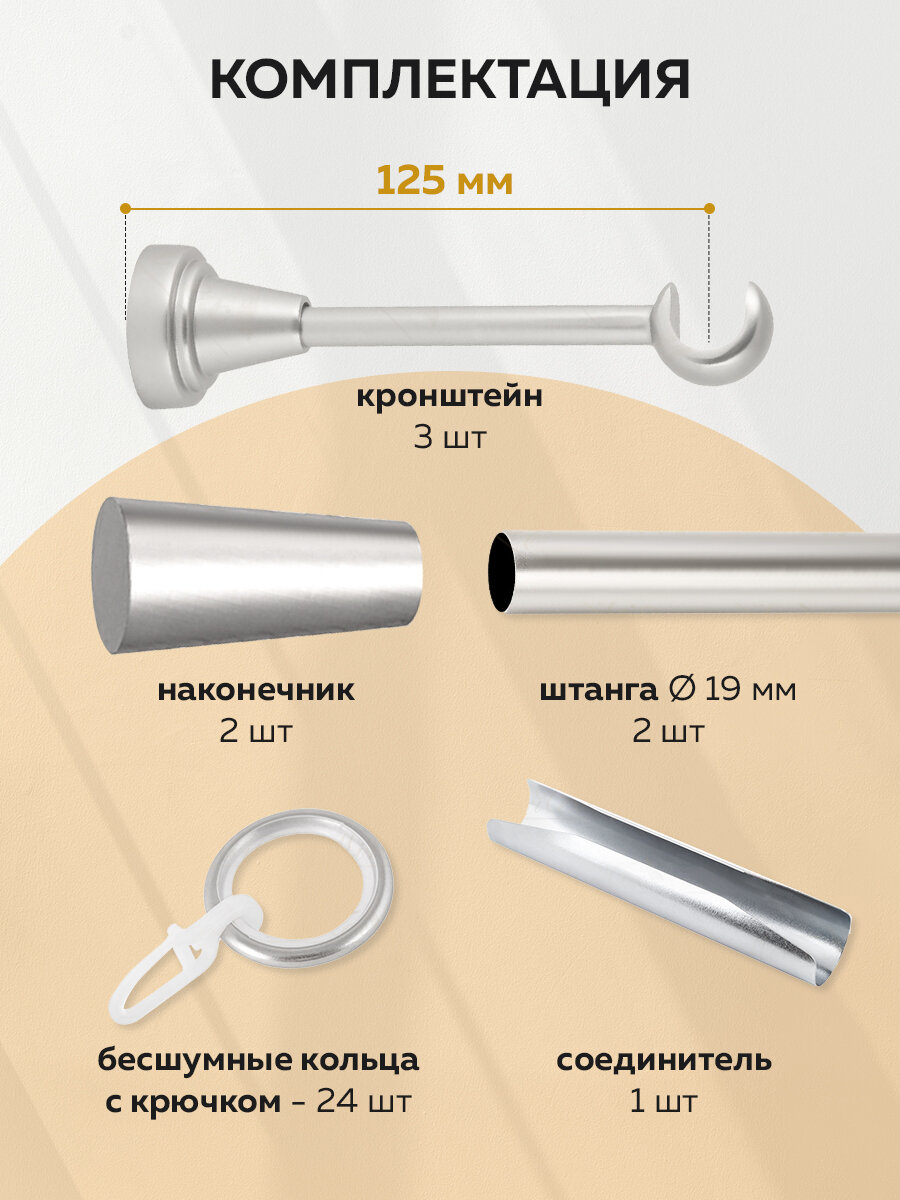 Карниз для штор Mirtex Премиум Сатин Хайп, диаметр 19мм, двухрядный, 240х19, серебристый
