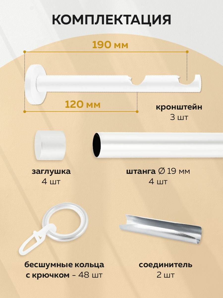 Карниз для штор круглый однорядный металлический бесшумный 240см Mirtex Premium 19мм круглый составной, гардина для штор