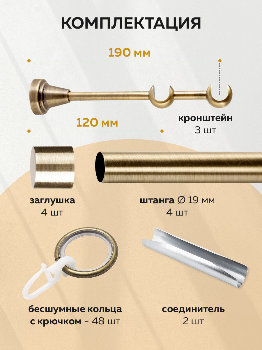 Карниз для штор настенный круглый двухрядный металлический бесшумный 240см Mirtex Premium Антик 25/16мм составной гладкий, гардина для штор
