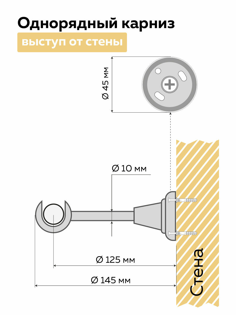 Карниз для штор с декоративным наконечником Mirtex Premium 240 см однорядный