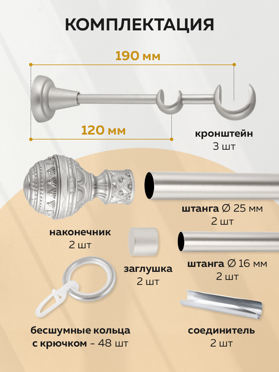 СохранитьКарниз для штор настенный круглый двухрядный металлический бесшумный 240см Mirtex Premium Сатин 25/16мм составной гладкий, гардина для штор интересное: