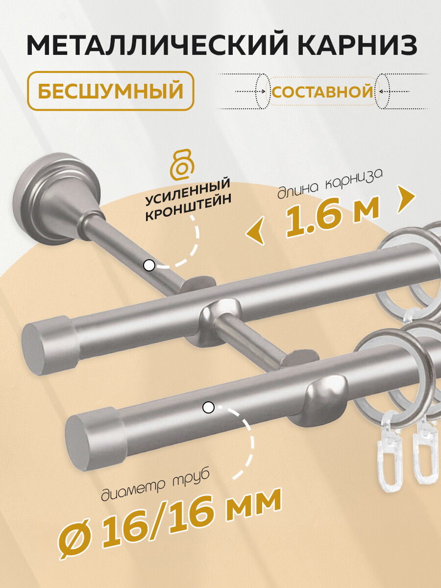 Карниз для штор Mirtex Premium, 16х16 см, двухрядный, металлический, хромированный, 1,6 м