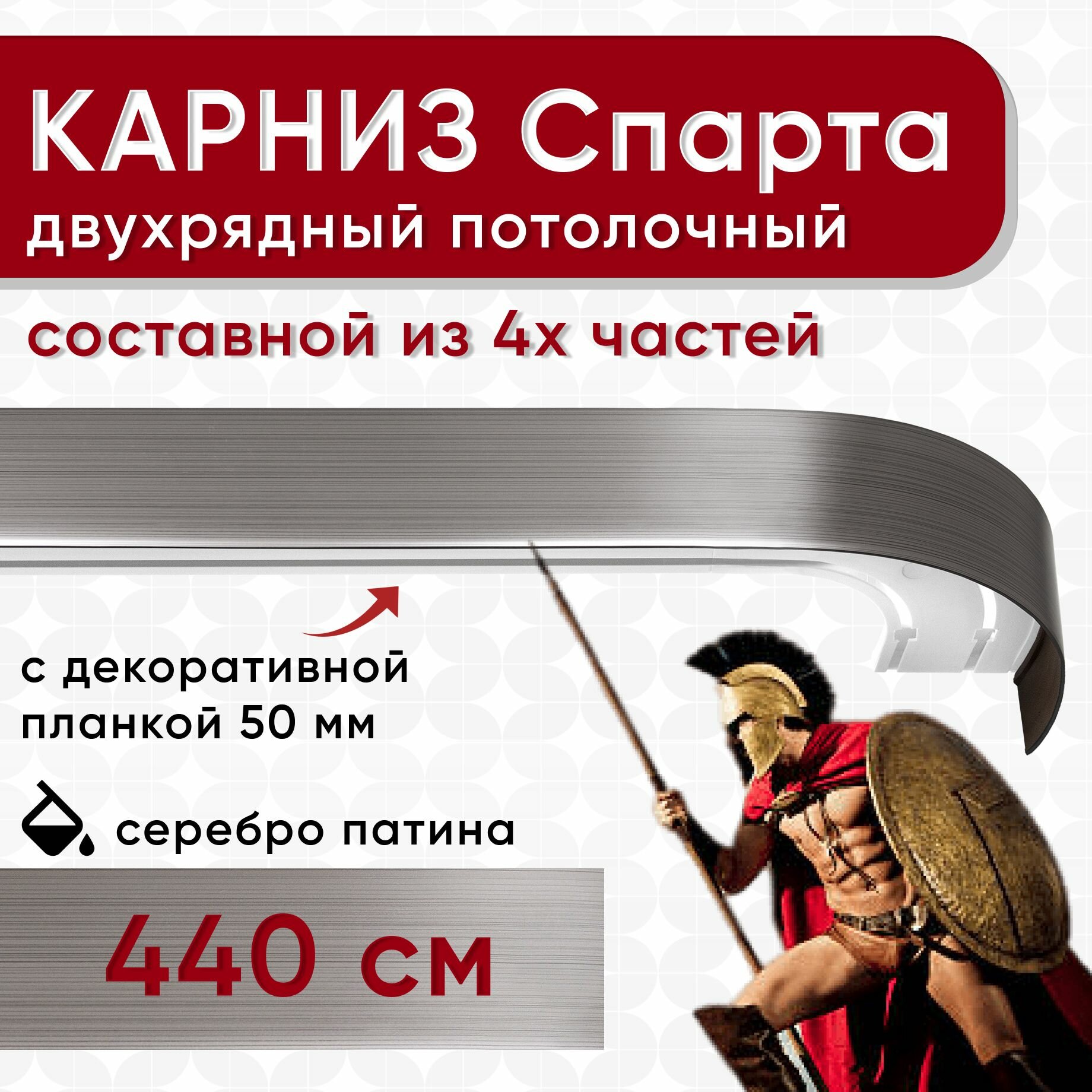 Купить Карниз двухрядный с декоративной планкой Спарта, потолочный пластмассовый, серебро патина 440 см