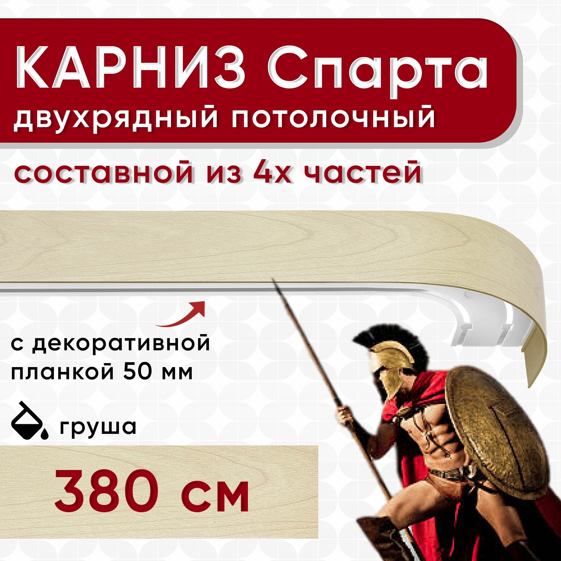 Купить Карниз двухрядный с декоративной планкой Спарта, потолочный пластмассовый, груша 380 см