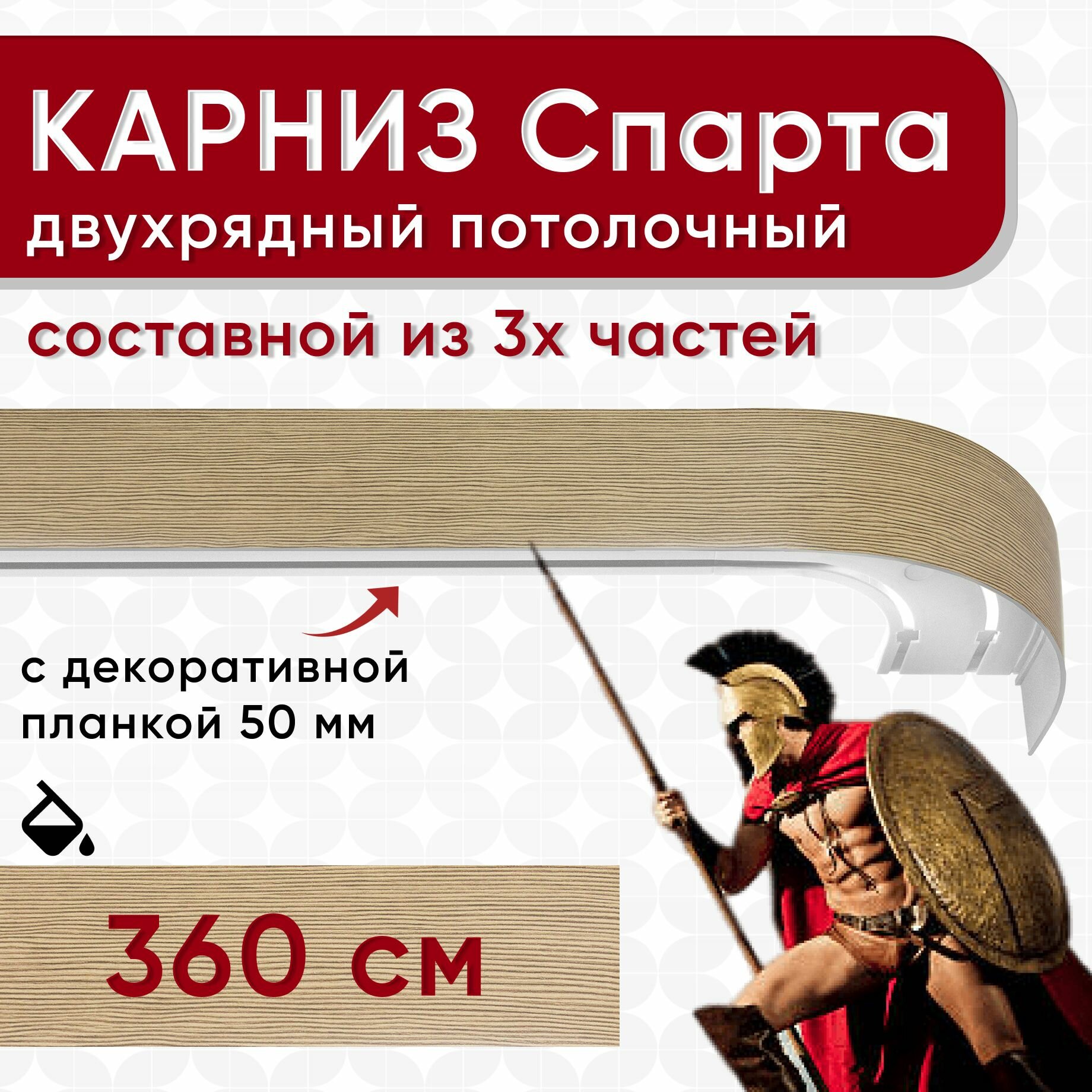Купить Карниз двухрядный с декоративной планкой Спарта, потолочный пластмассовый, вельвет бежевый 360 см