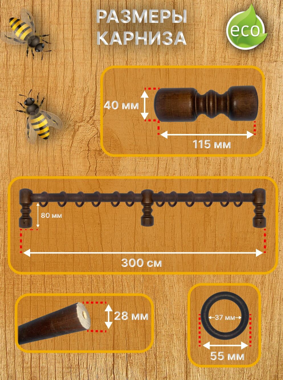 Кольца для карниза (дерево) с крючками на карниз д 28 мм-20шт