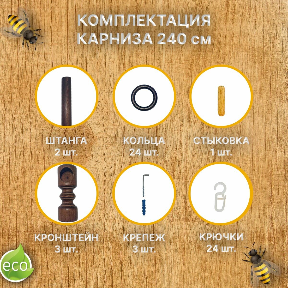 Кольца для карниза (дерево) с крючками на карниз д 28 мм-20шт